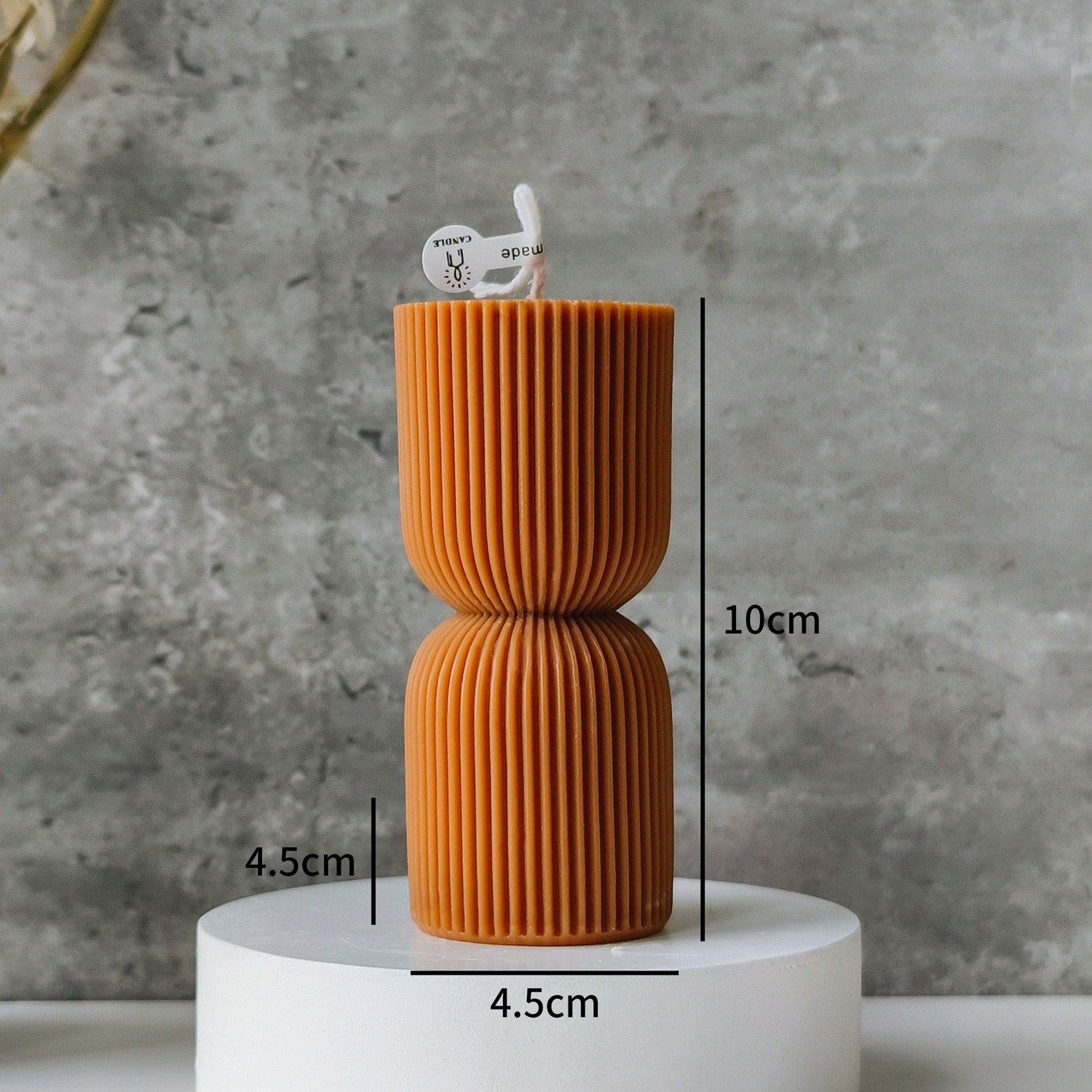 Velas cilíndricas acanaladas que crean efectos de luz y aportan sofisticación. Con combustión prolongada y uniforme, su diseño geométrico en tonos cálidos transforma cualquier espacio en un ambiente acogedor, ideal para mesas, repisas y rincones especiales.