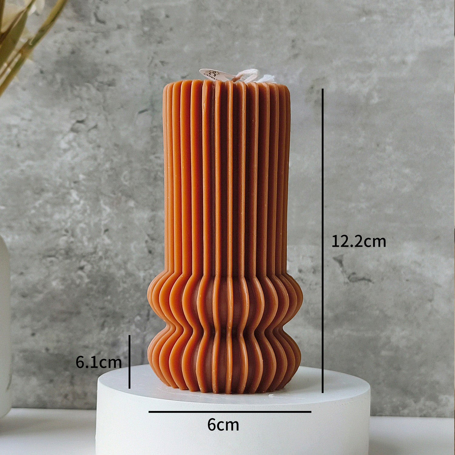 Esta elegante vela de diseño cilíndrico acanalado con ondulaciones verticales crea un juego visual sofisticado que captura y refleja la luz de manera única. Su forma escultural no solo brinda una iluminación cálida y acogedora, sino que funciona como una pieza decorativa que transforma cualquier espacio de tu hogar en un ambiente elegante y acogedor.