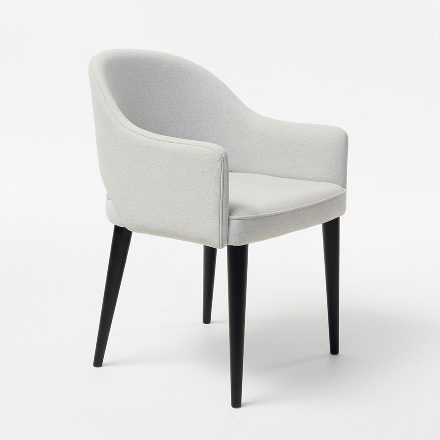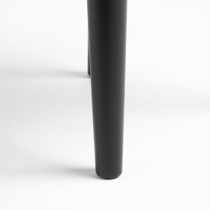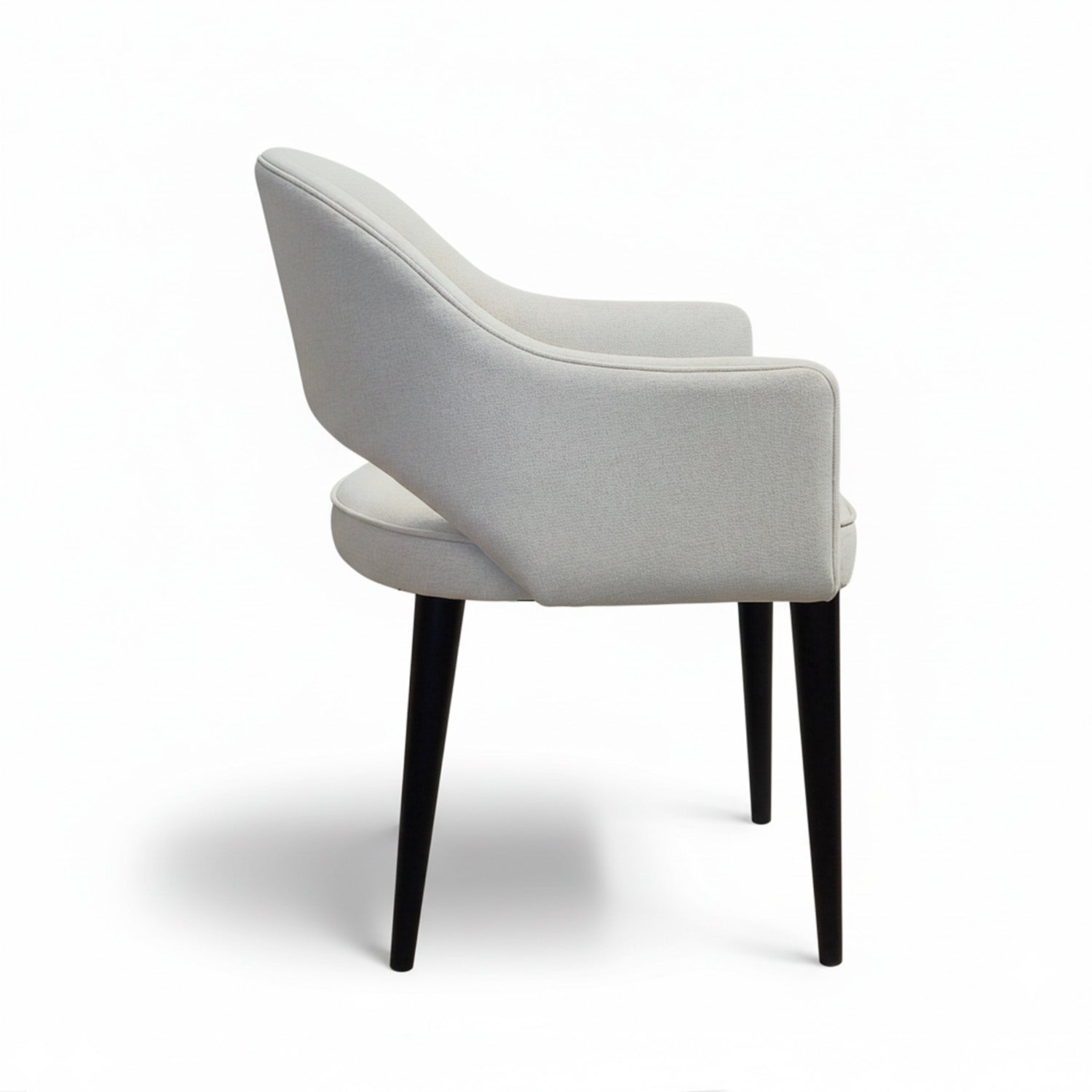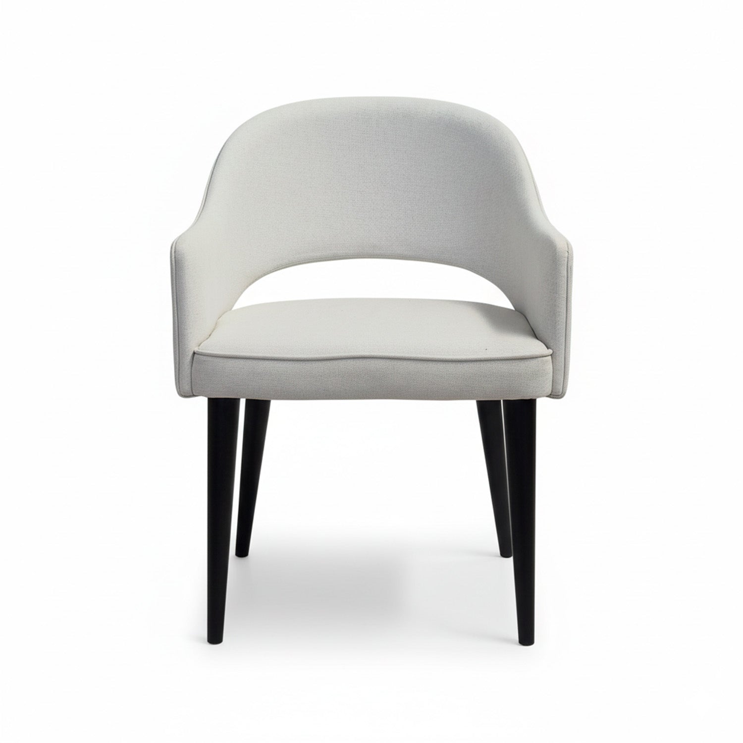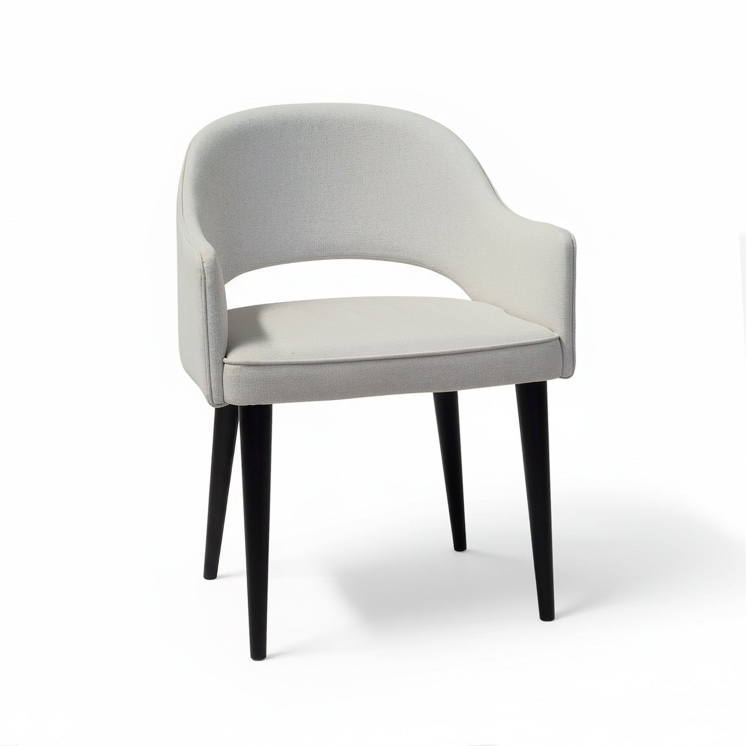 La silla Eloa presenta un diseño moderno y minimalista con un toque de elegancia atemporal. Sus patas de madera lisa están destacadas con un acabado dorado en las puntas, añadiendo un detalle sofisticado y distintivo.