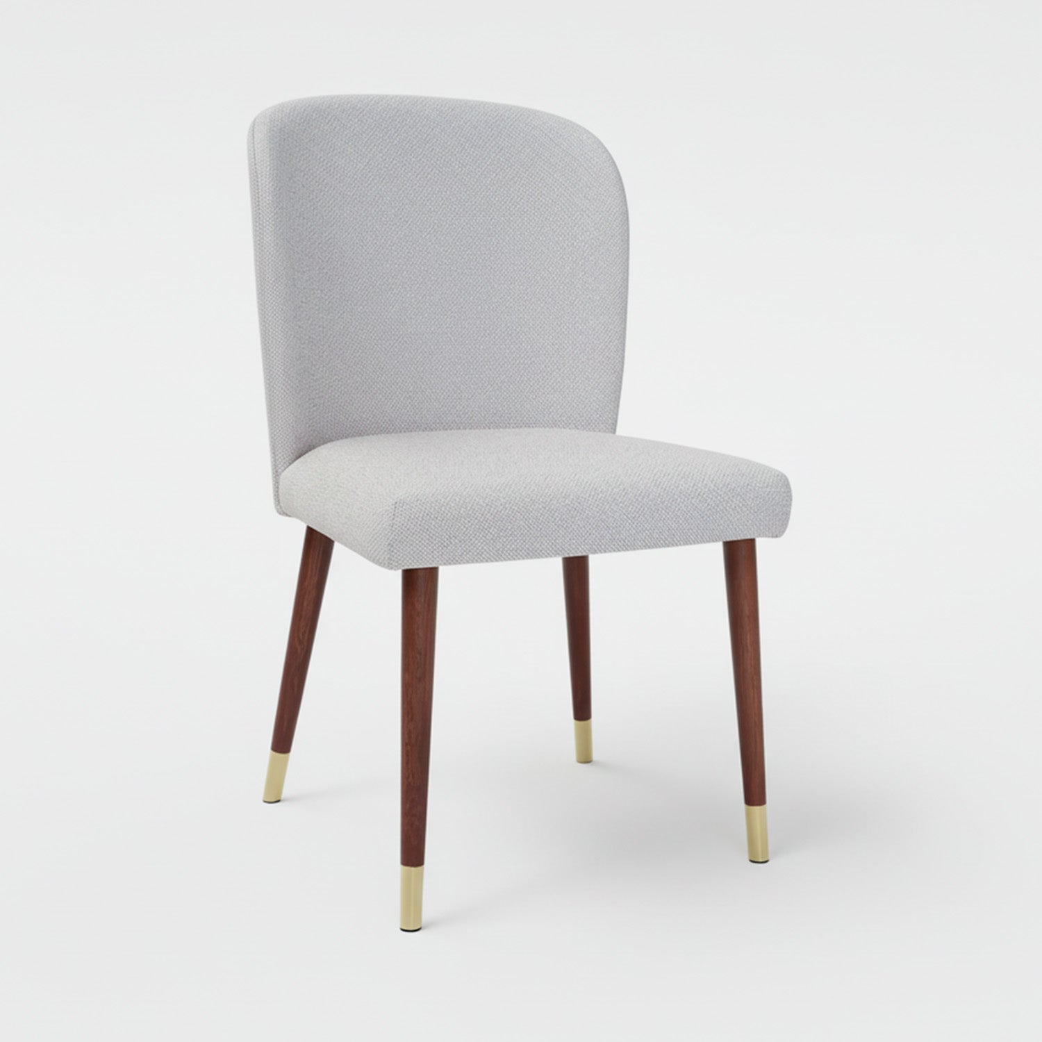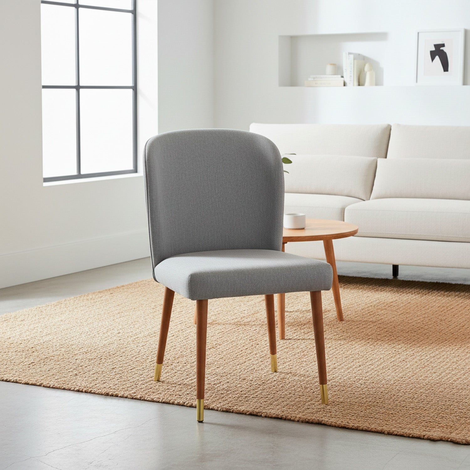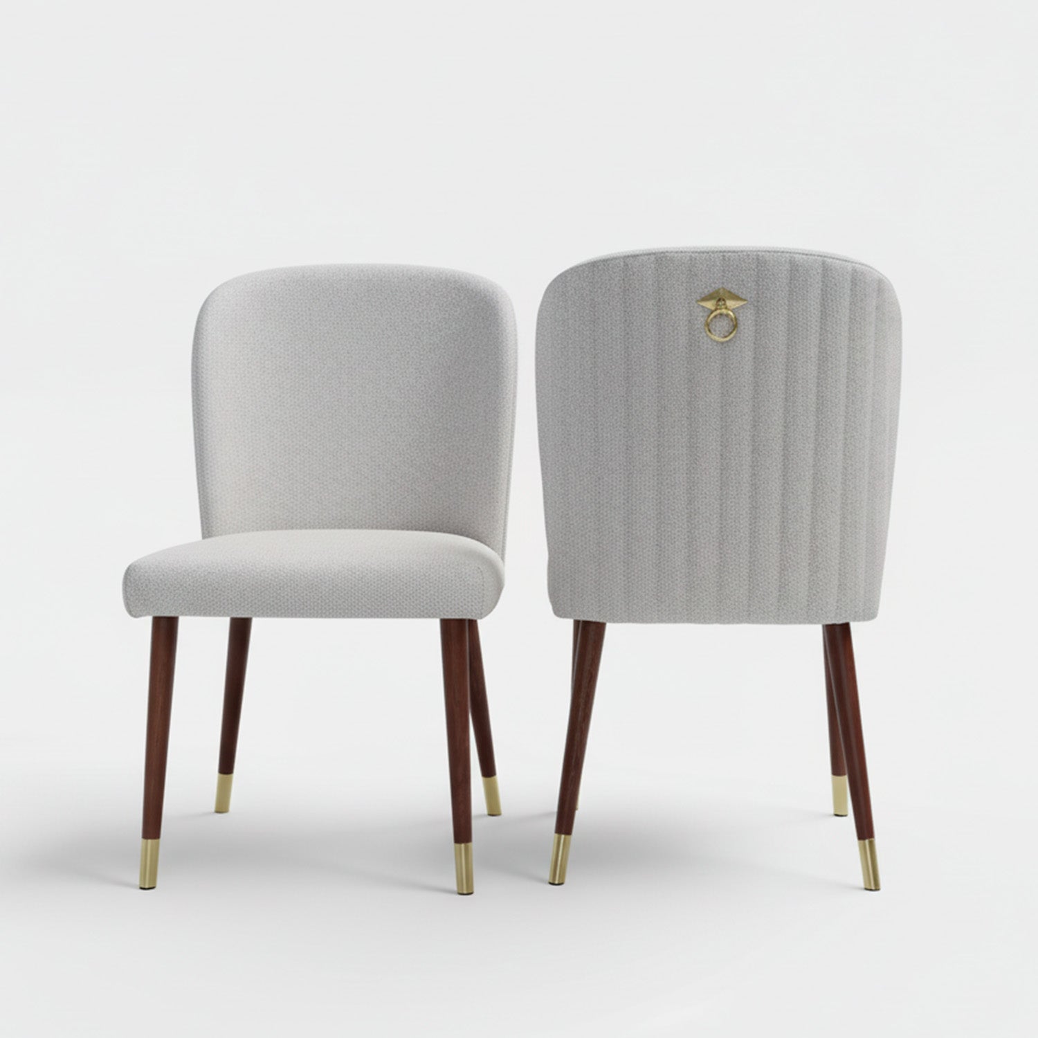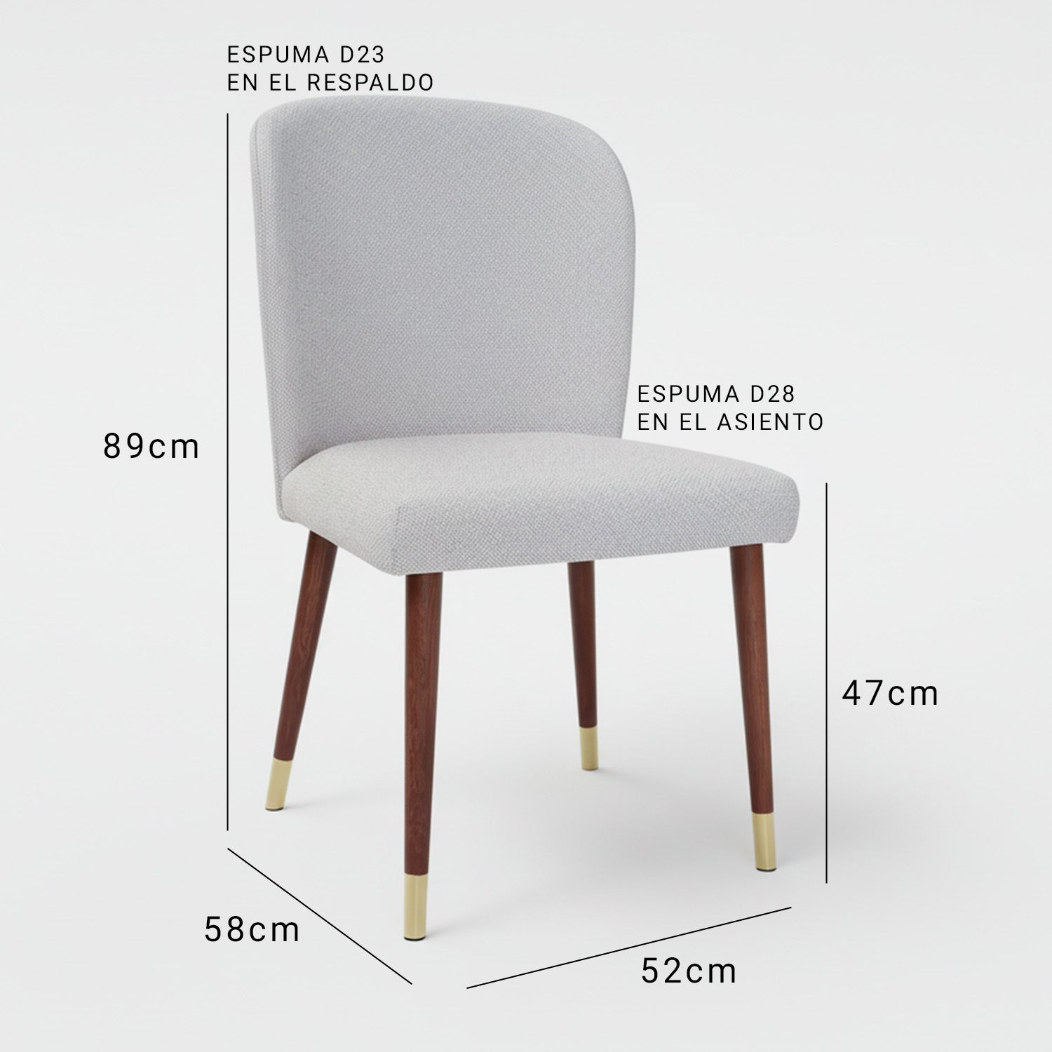 La silla Moana fusiona el estilo nórdico con toques modernos en un diseño único y atemporal. Con patas de madera lisa y un sutil acabado dorado, su respaldo largo y curvo ofrece opciones tanto con brazos como sin ellos, proporcionando comodidad ergonómica y elegancia