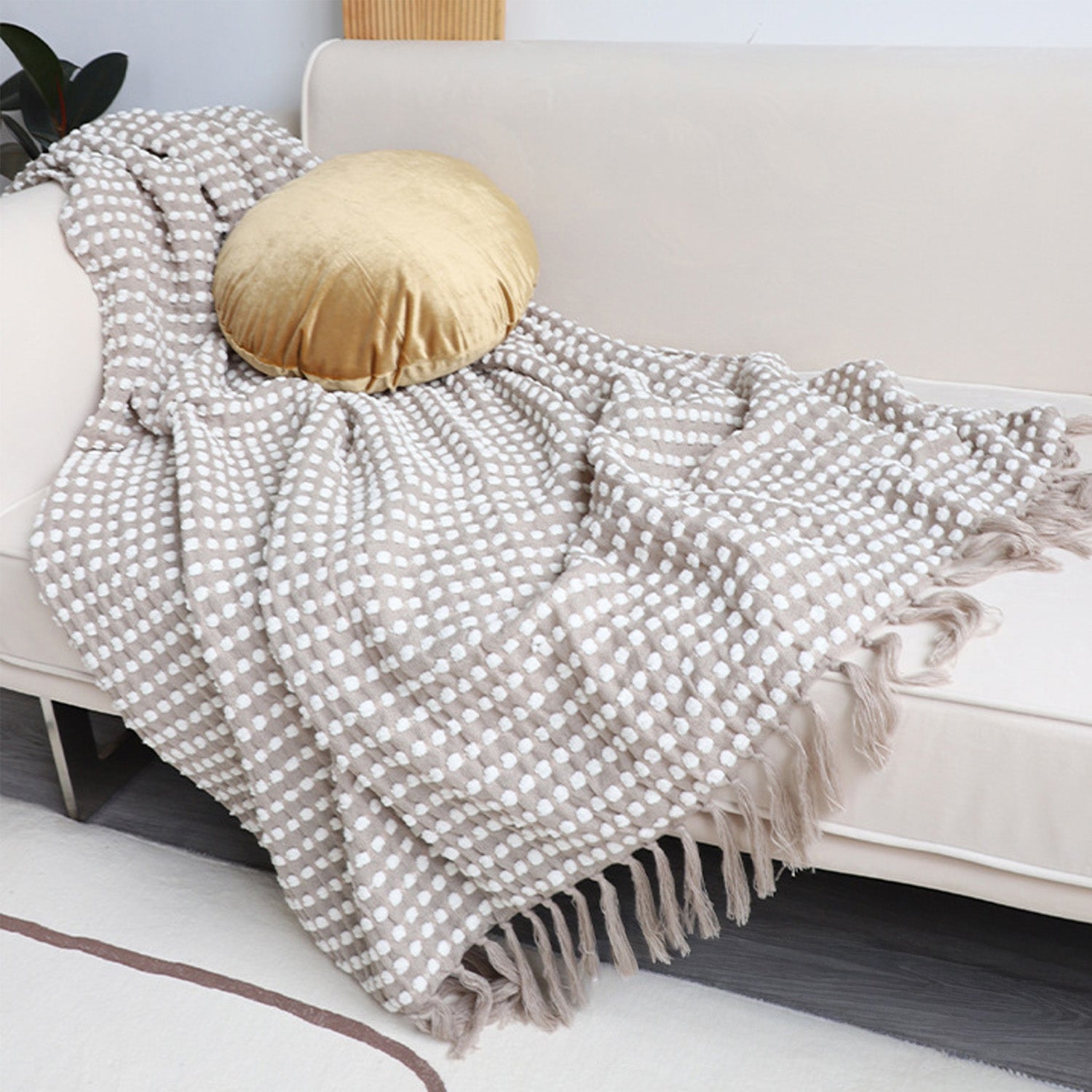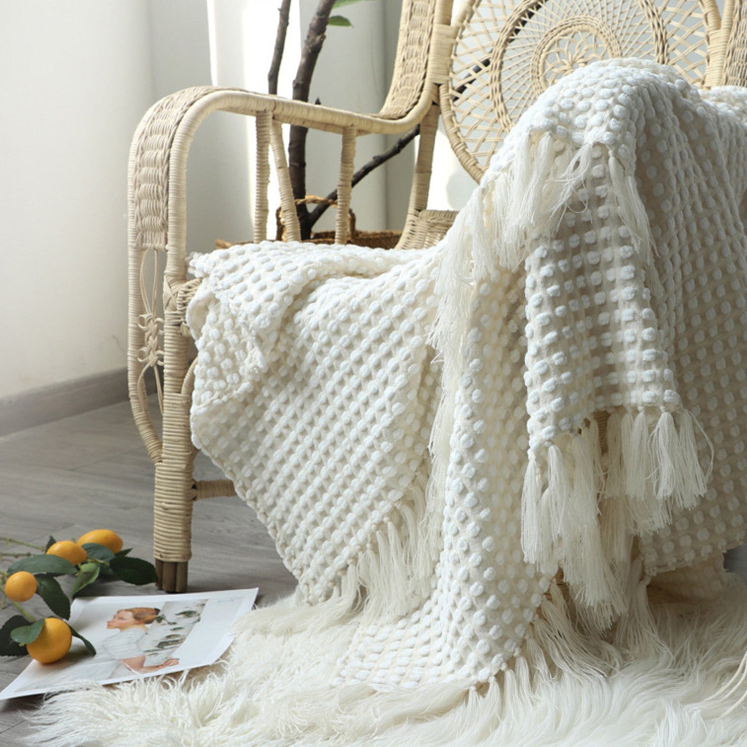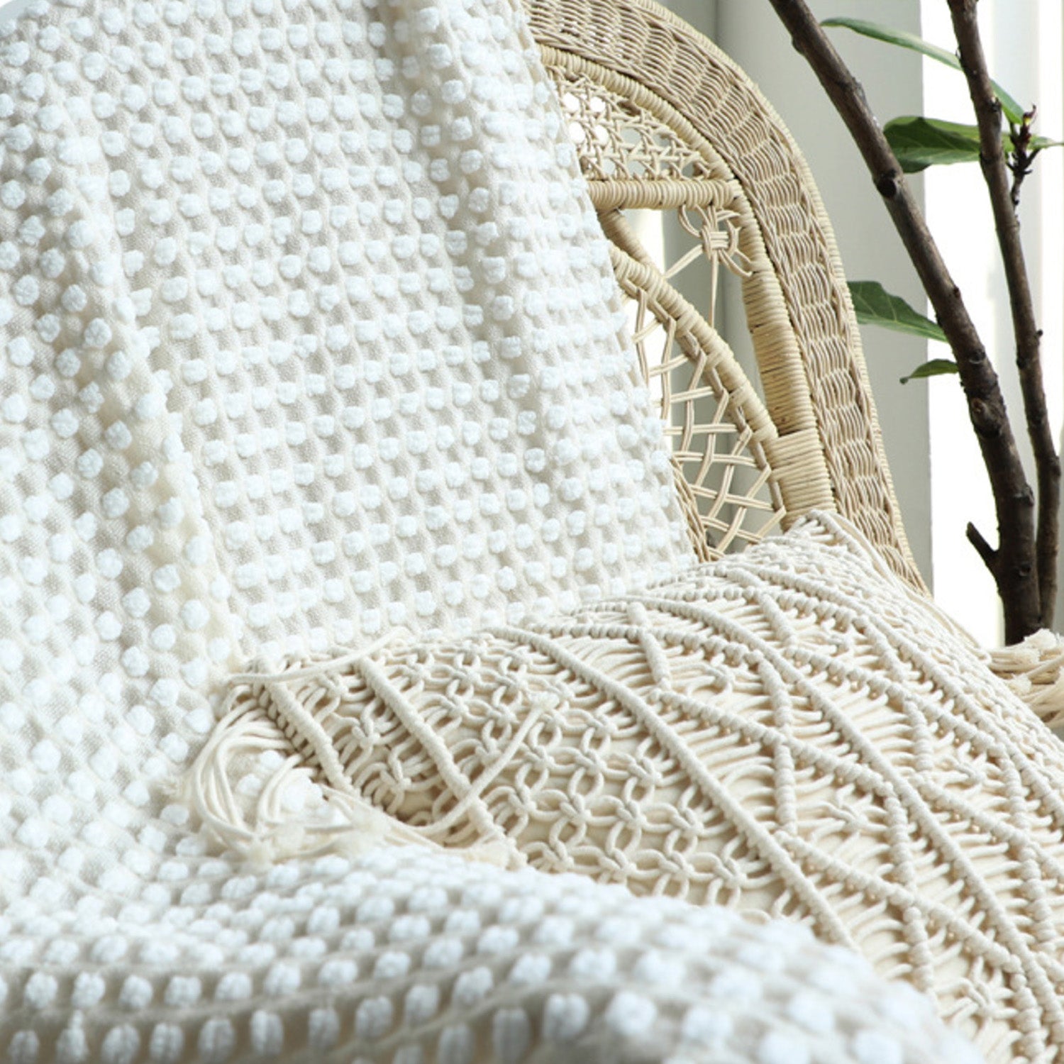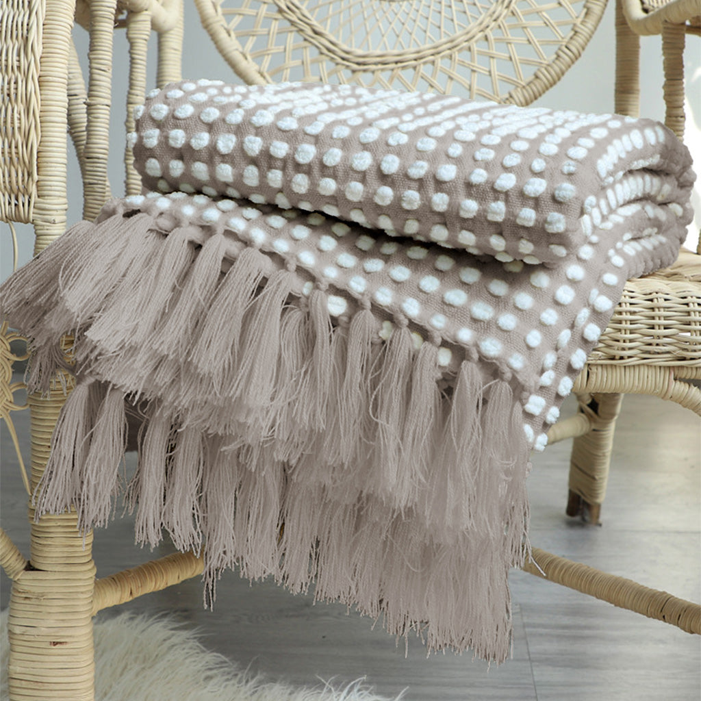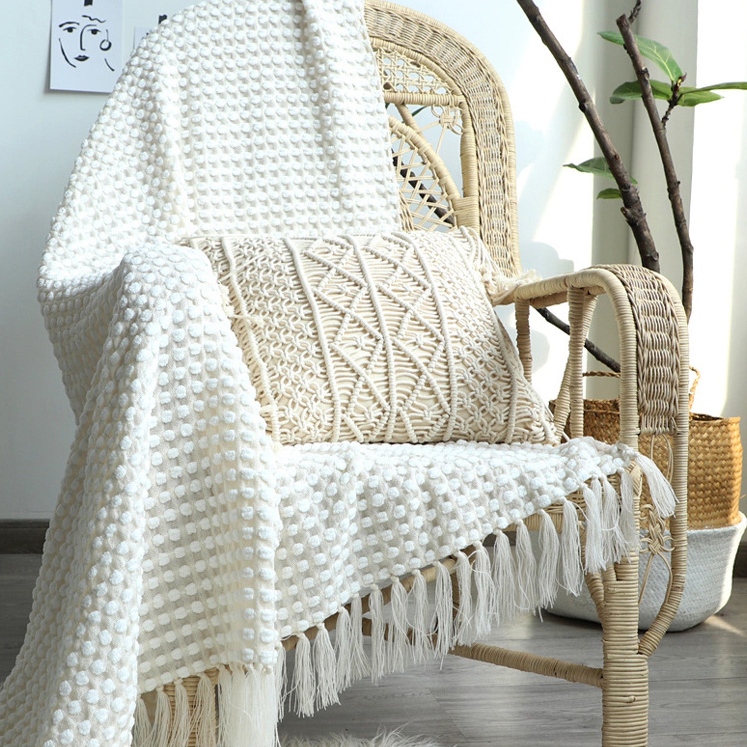 Esta manta chenilla presenta un sofisticado patrón de puntos en relieve que aporta textura y estilo únicos. Su tejido de poliéster ultra suave y esponjoso, con dimensiones de 220cm x 127cm y elegantes flecos, es perfecta para relajarte o decorar. Disponible en dos tonos versátiles que transforman cualquier ambiente con calidez y un toque bohemio irresistible.