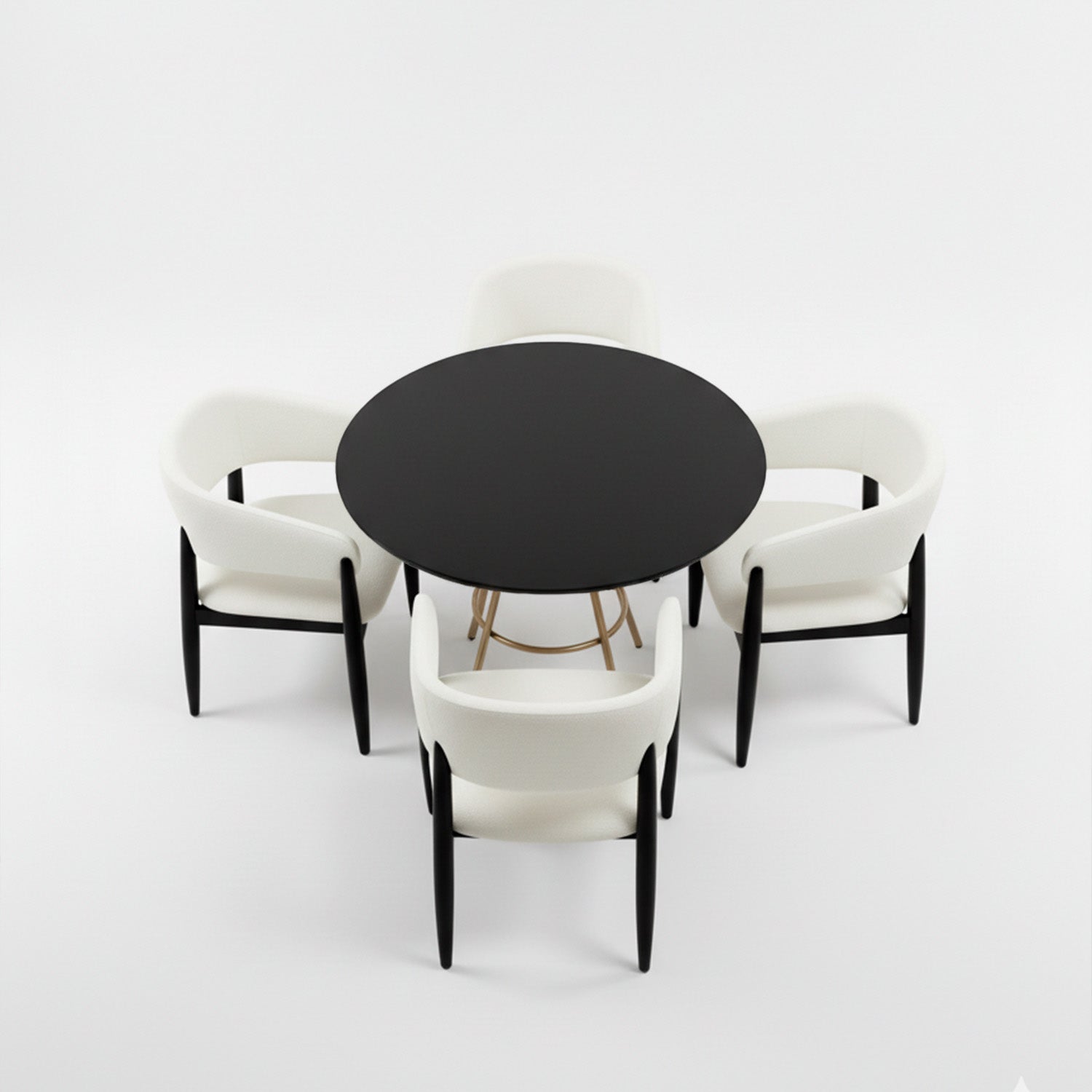 La Mesa Rita de 90 cm, acompañada por cuatro sillas Isabely, ofrece un diseño minimalista que combina elegancia y sofisticación. Perfecta para salas de estar y oficinas, esta combinación aporta un ambiente moderno y refinado, ideal para quienes buscan funcionalidad sin sacrificar estilo.