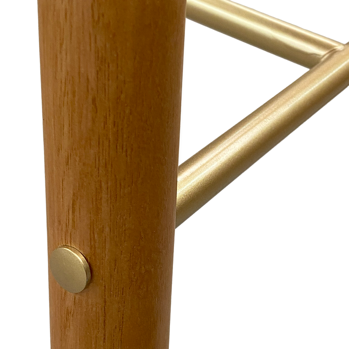 El piso bar Luci fusiona la elegancia de las patas largas de madera maciza con toques de metal dorado, creando una unión perfecta entre lo clásico y lo contemporáneo. Su género texturizado proporciona una sensación placentera al tacto, complementando su diseño moderno y bohemio que destaca en cualquier ambiente del hogar con un toque de distinción.