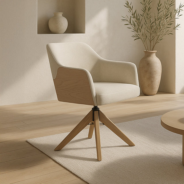 Esta poltrona giratoria combina diseño envolvente, base funcional y materiales de alta calidad como madera de alta calidad y un tapiz resistente al uso diario, ofreciendo confort y estilo en un solo mueble. Ideal para salas, escritorios o rincones de lectura, hace tu hogar más cómodo, práctico y sofisticado.