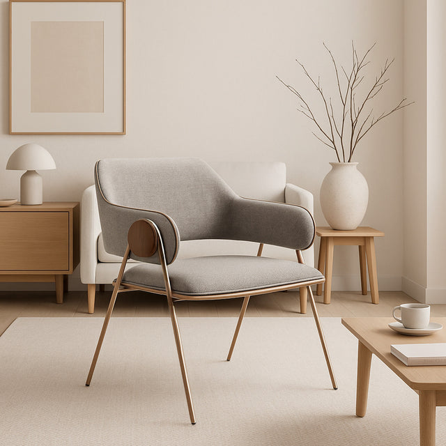 Con un diseño moderno y elegante, esta poltrona aporta carácter y estilo a tu hogar gracias a sus formas curvas y detalles sofisticados. Su estructura está fabricada con madera de reforestación, base de acero galvanizado y tapizado en tela de alta calidad, lo que asegura resistencia y confort. Es una pieza que embellece cualquier espacio con personalidad y durabilidad.