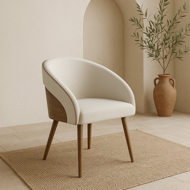 Imagínate hundirte en esta hermosa poltrona después de un largo día. Su diseño envolvente con tapizado suave y respaldo de madera natural no solo te abrazará con comodidad, sino que transformará completamente tu espacio. Las patas de madera clara le dan ese toque escandinavo que tanto buscas, mientras que su tamaño perfecto se adapta a cualquier rincón de tu hogar.