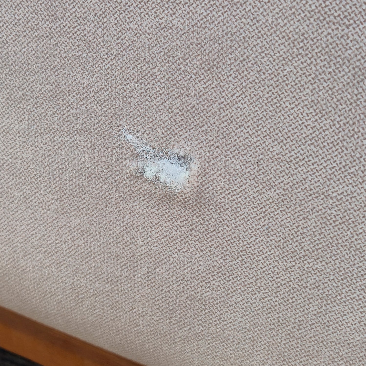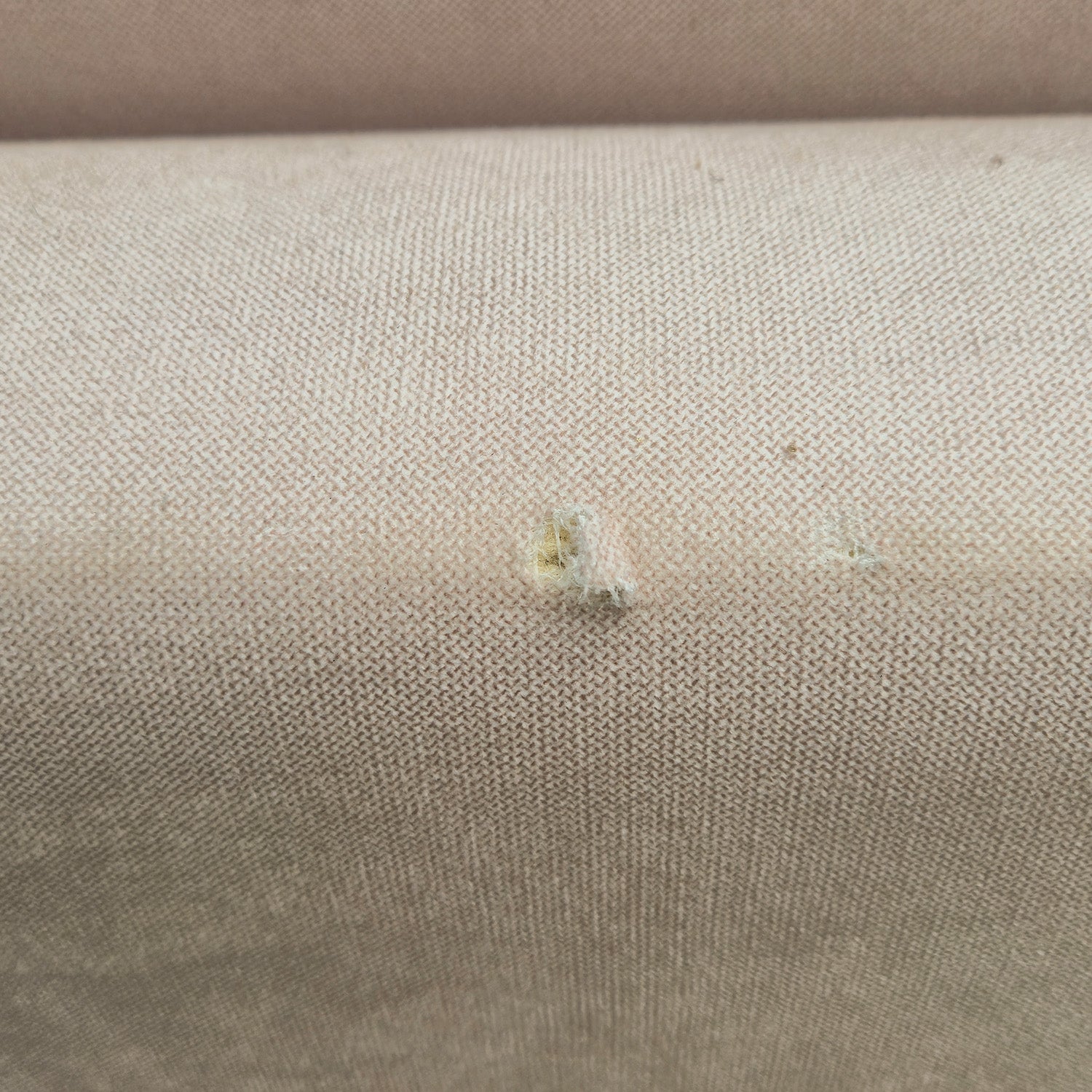 El sofá Piacenza de outlet tiene diversas manchas de suciedad y piquetes en la tela. Unos son más grandes que otros, pero no comprometen la estructura de la tela.