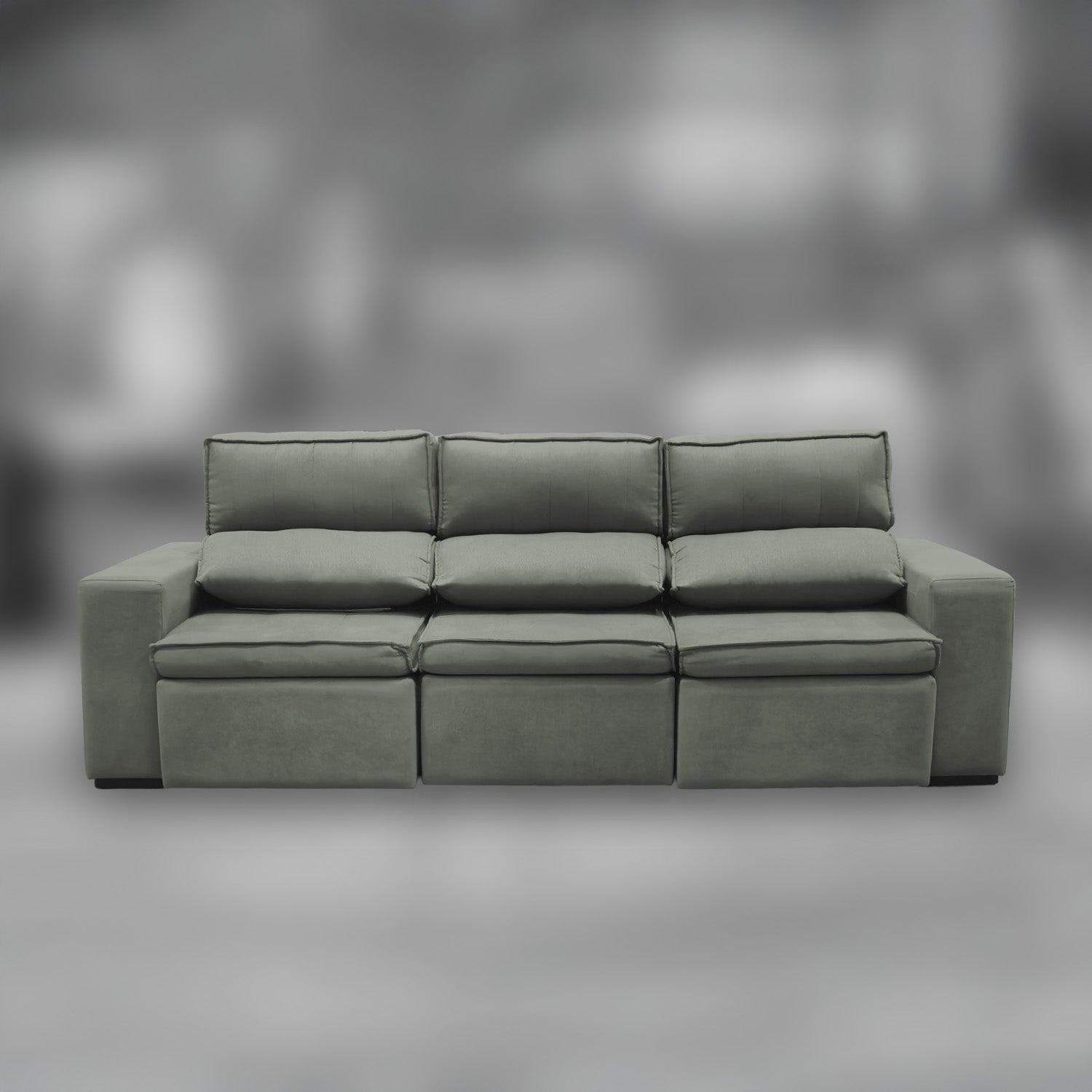 El sofá extensible y reclinable Toquio de 3 cuerpos, con funciones de extensión y reclinación, presenta marcas de desgaste únicamente en la tapicería de los tres asientos. Aparte de este desgaste en la tela, el sofá se encuentra en perfectas condiciones tanto en su funcionamiento como en su aspecto general.