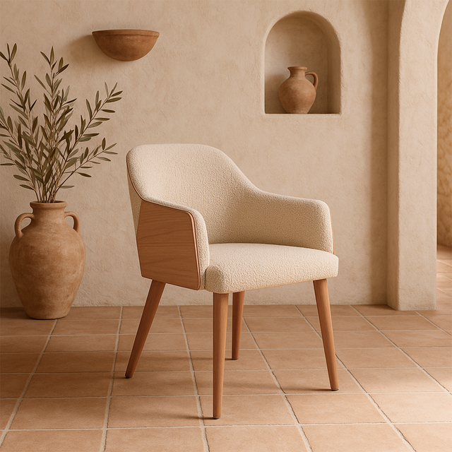 Con un diseño sofisticado y moderno que fusiona líneas curvas con una estética acogedora. Su estructura envuelve con suavidad la espalda y los brazos, brindando una sensación de confort visual y ergonómico.