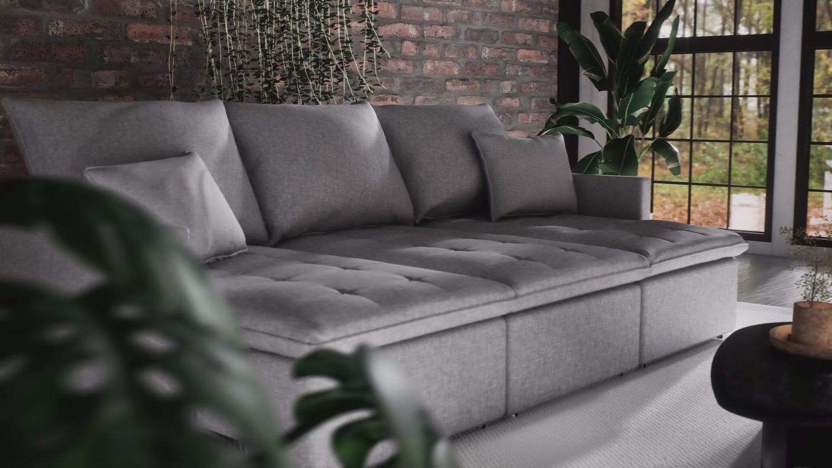 - Respaldo y detalles: Respaldos reclinables con cojines sueltos de fibra siliconada que proporcionan un soporte cómodo y un fácil mantenimiento. Se complementan con cojines decorativos que se pueden personalizar según la tela elegida: lino, ante, polipiel o gamuza.