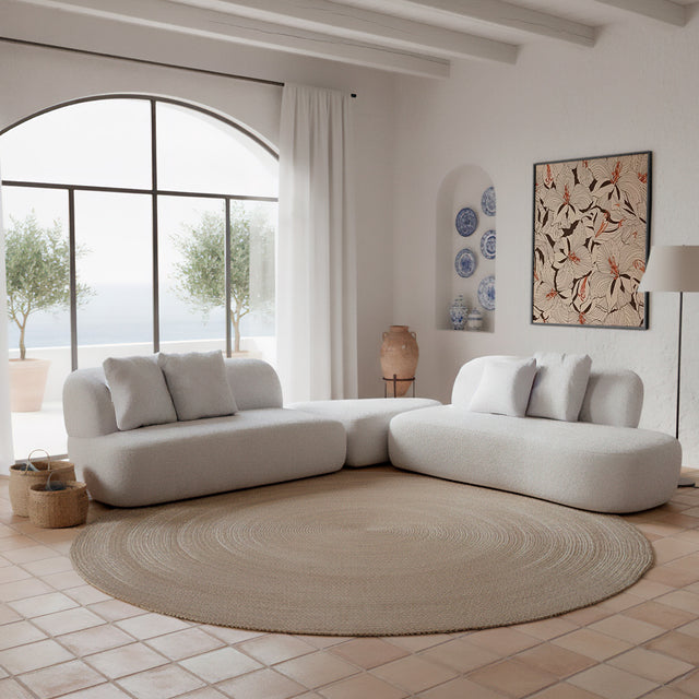 Este sofá modular combina formas orgánicas y confort excepcional en un diseño contemporáneo que se adapta a tu espacio. Disponible con asiento de esquina con respaldo o sin respaldo, ofrece máxima versatilidad para crear la configuración perfecta. Su tapizado bouclé o lino en tonos neutros y líneas suaves transforman cualquier ambiente en un refugio de estilo y relajación.