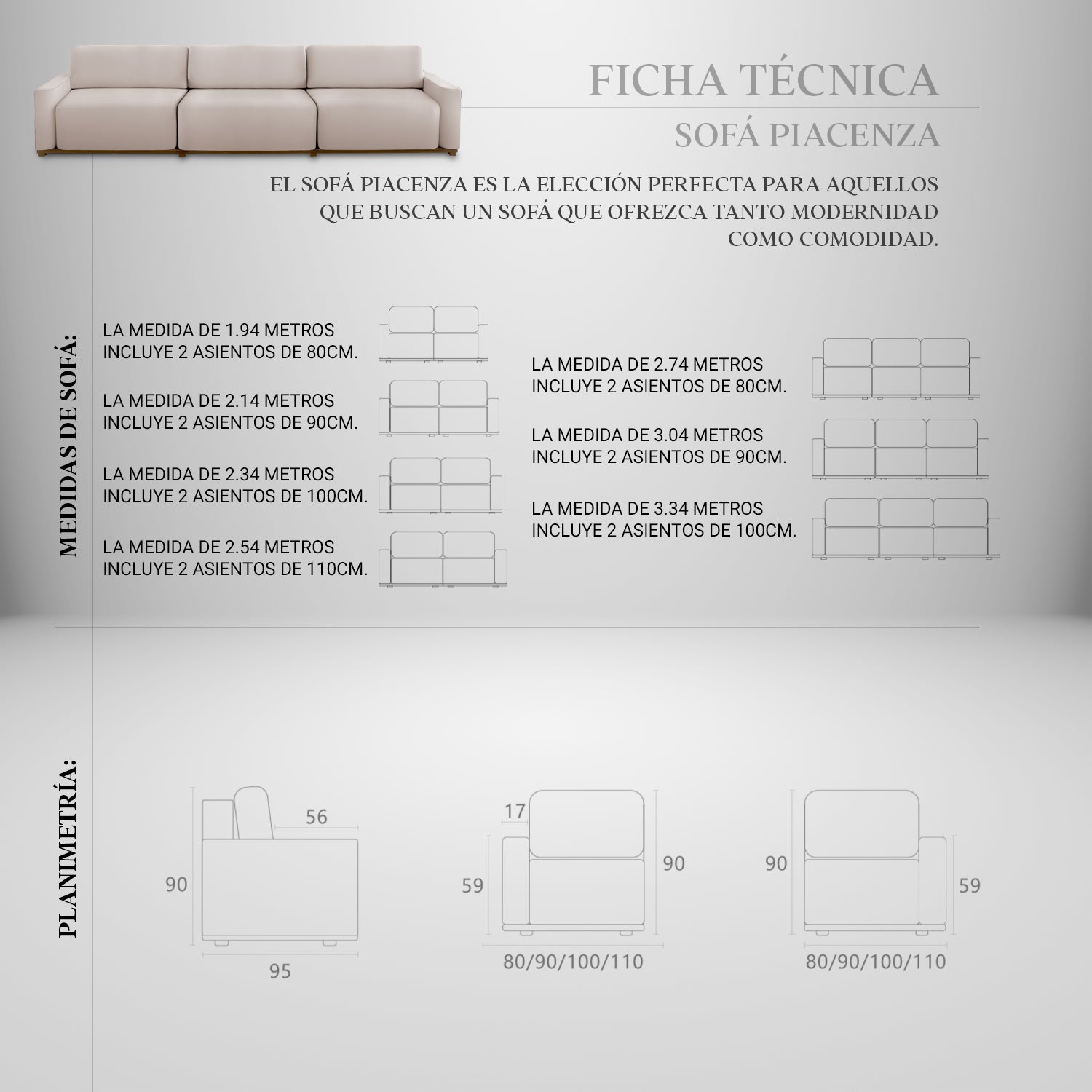 - Profundidad del sofá: 95cm.
