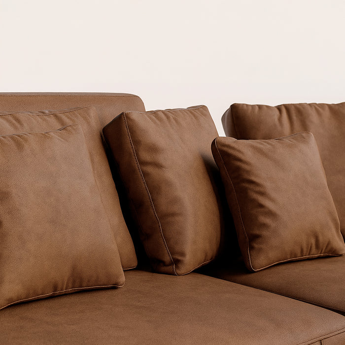 - Respaldo y detalles: Respaldos fijos con cojines sueltos de fibra siliconada que proporcionan un soporte cómodo y un fácil mantenimiento. Se complementan con cojines decorativos que se pueden personalizar según la tela elegida: lino, ante, polipiel o gamuza.