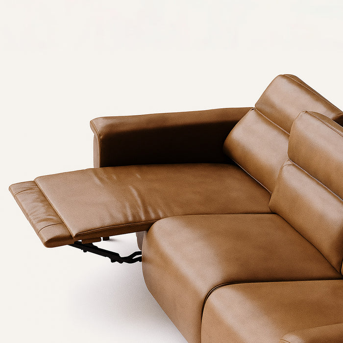 El sofá Reboot combina elegancia y tecnología con su sistema de reclinado automático. Cuenta con botones prácticos en los costados de cada brazo que activan el mecanismo sin esfuerzo, y ofrece dos niveles de reclinado en el reposapiés para ajustar tu comodidad según el momento.
