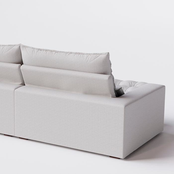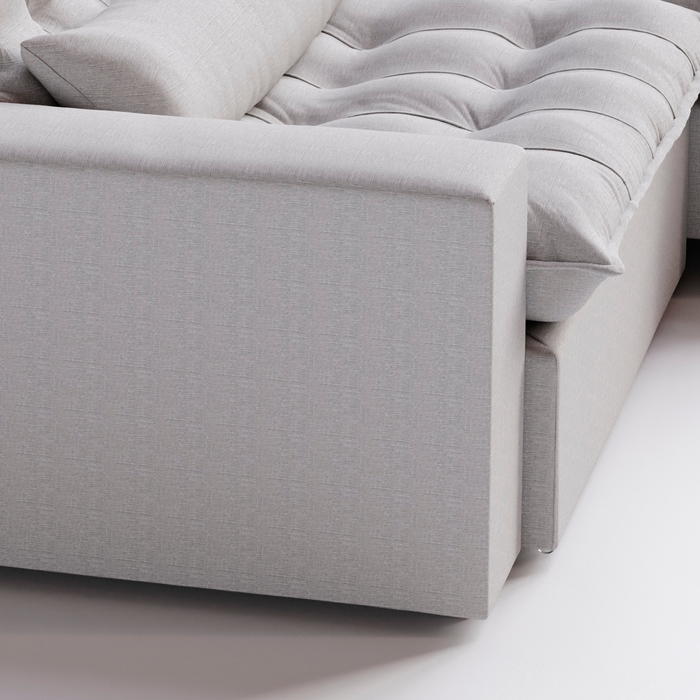 El sofá Madri combina un lenguaje visual moderno con formas rectangulares bien definidas. Sus brazos anchos y bajos, junto con la base continua y compacta, transmiten una sensación de solidez y presencia.