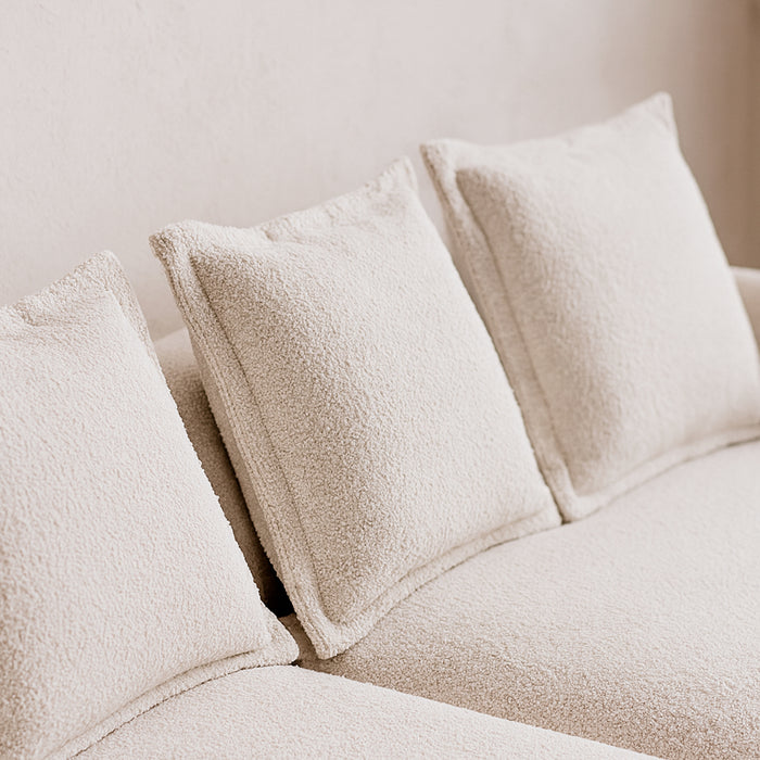- Respaldo y detalles: Respaldos fijos con cojines sueltos de fibra siliconada que proporcionan un soporte cómodo y un fácil mantenimiento. Se complementan con cojines decorativos que se pueden personalizar según la tela elegida: lino, ante, polipiel o gamuza.