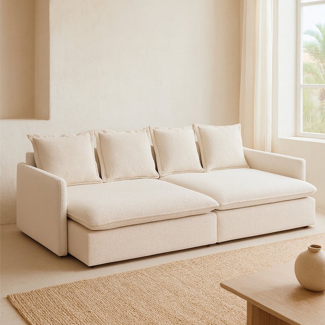El sofá Hope está diseñado pensando en tu comodidad absoluta. Tiene líneas suaves y orgánicas, con cojines generosos que te invitan a hundirte en ellos, y un respaldo que combina dos elementos para darte el mejor soporte.