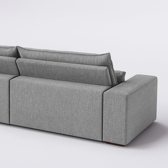 áxima, mientras que el respaldo con cojines sueltos ofrece un soporte ergonómico y personalizable. Su imponente diseño con amplios módulos y líneas suaves realza cualquier espacio.