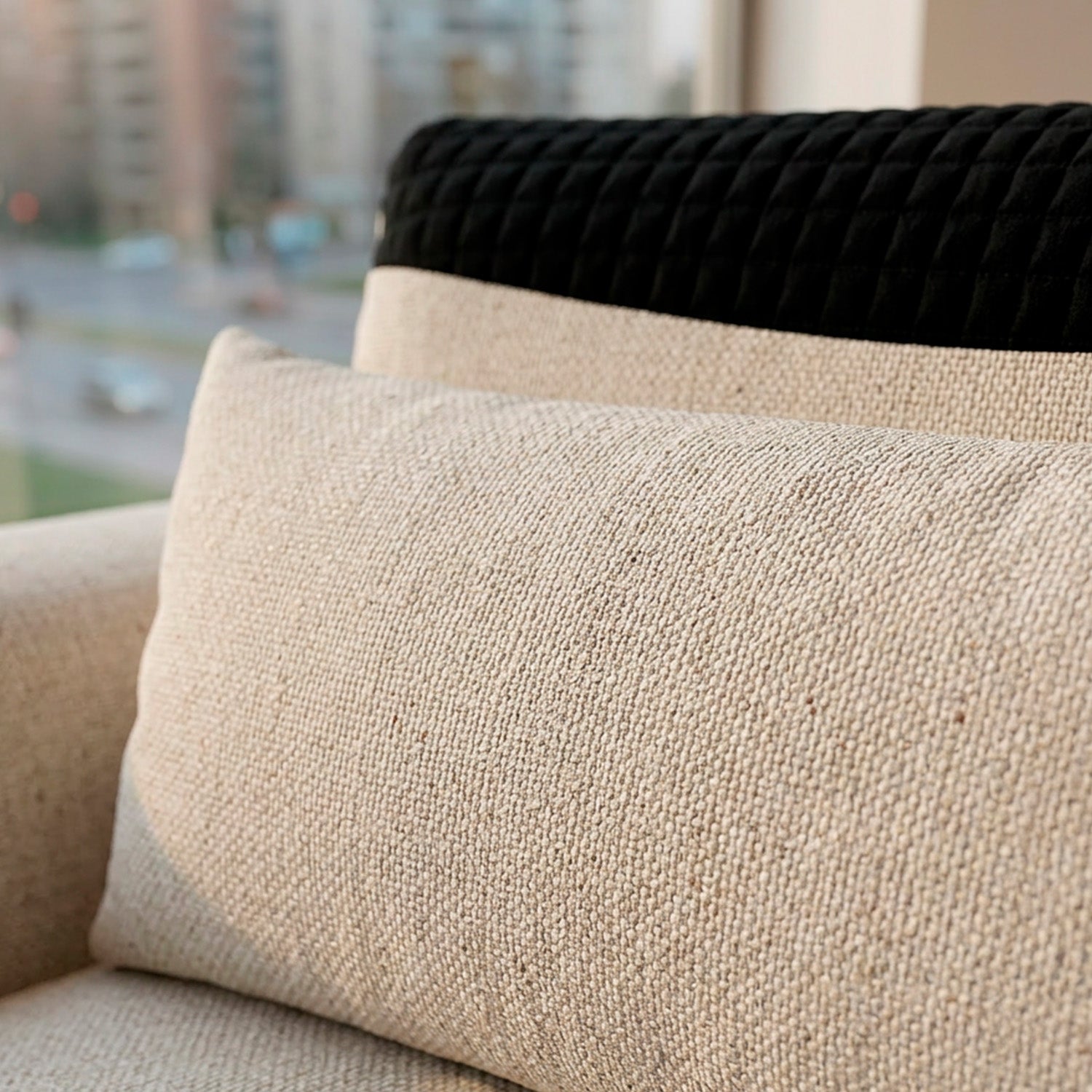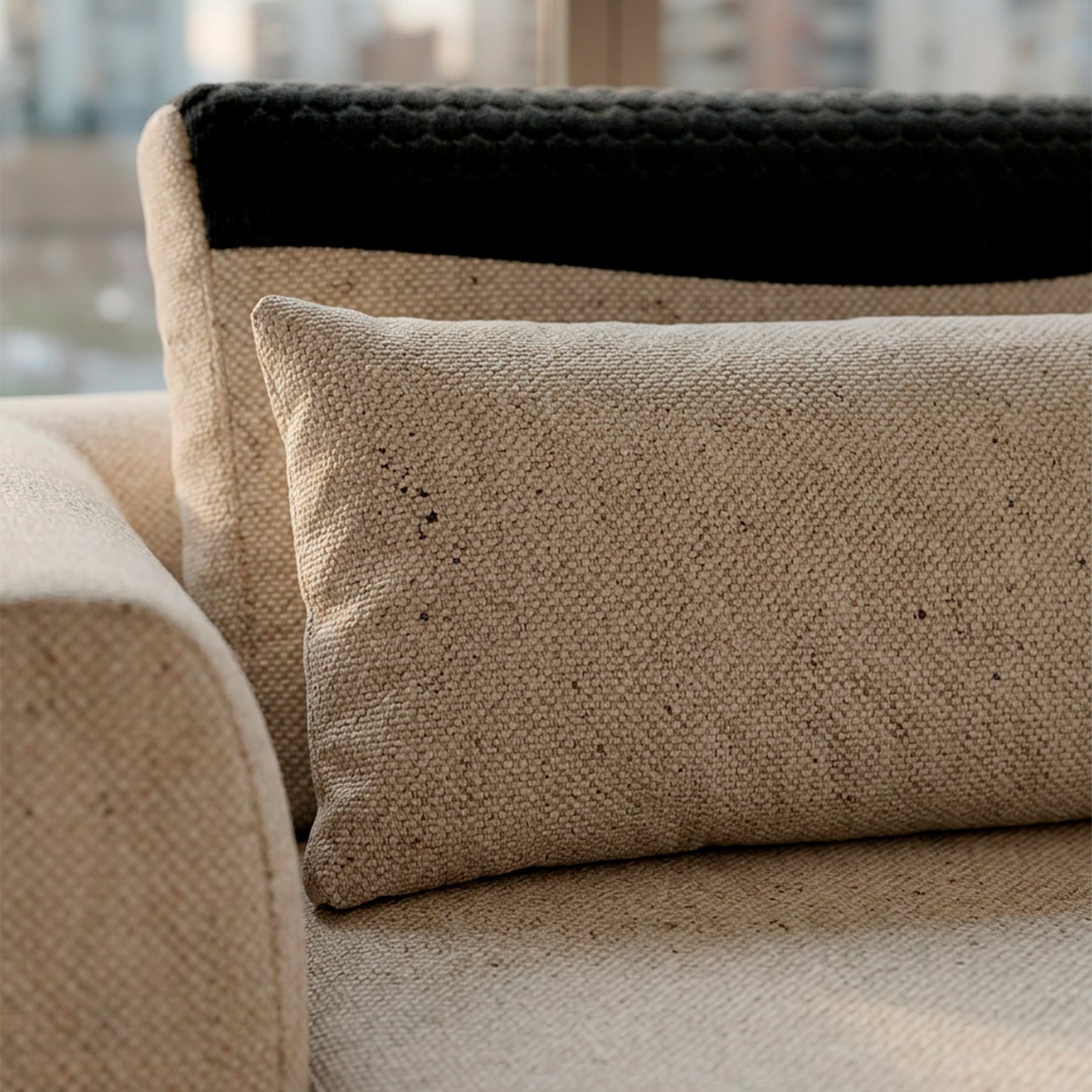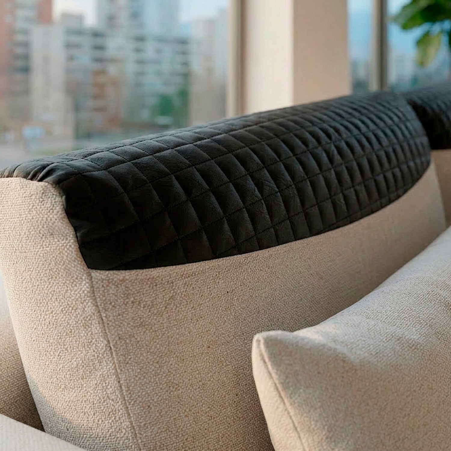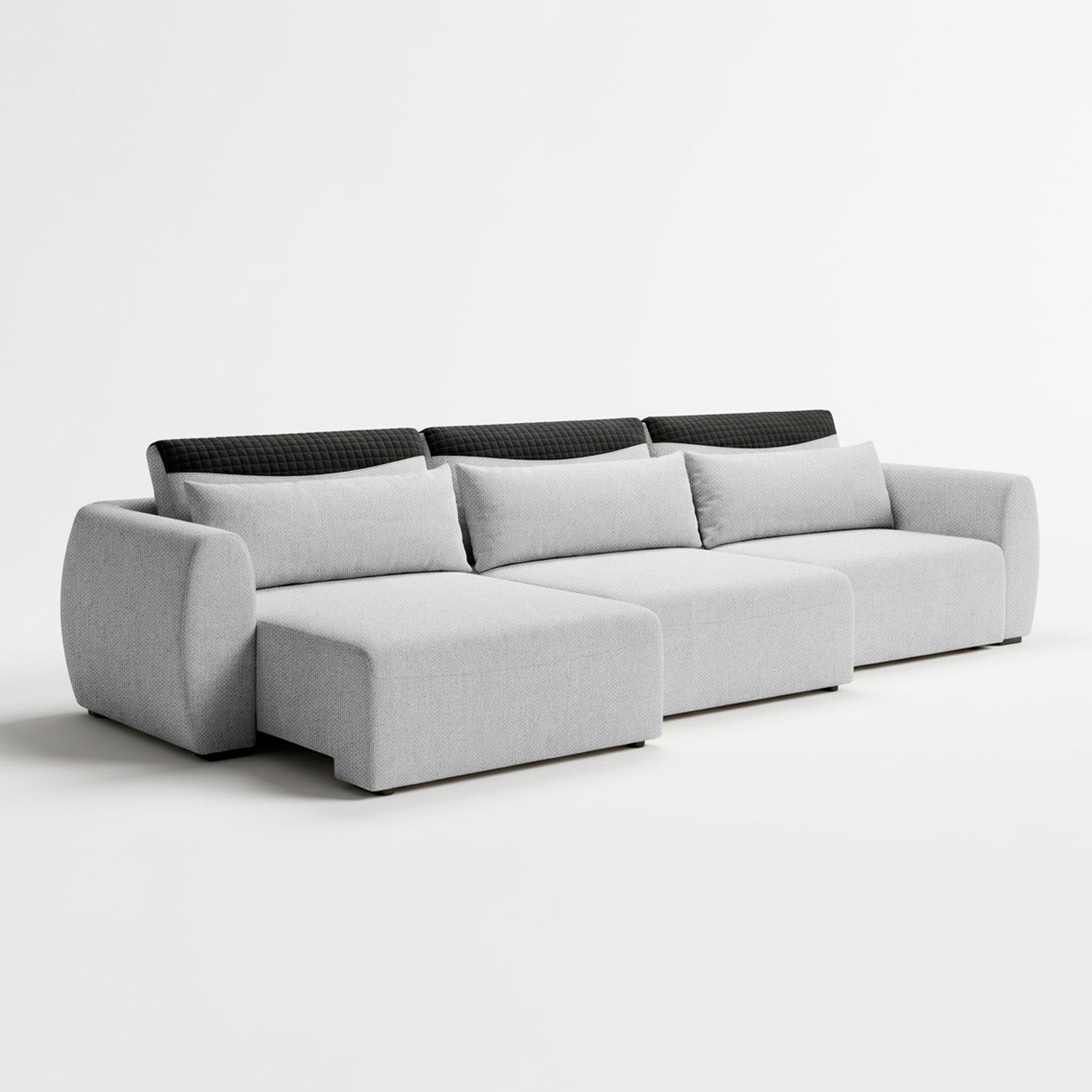 Este es un sofá moderno con un diseño minimalista y líneas limpias. Su tapizado textil y formas redondeadas le dan un aspecto contemporáneo y acogedor, perfecto para espacios actuales que buscan funcionalidad sin sacrificar estilo.