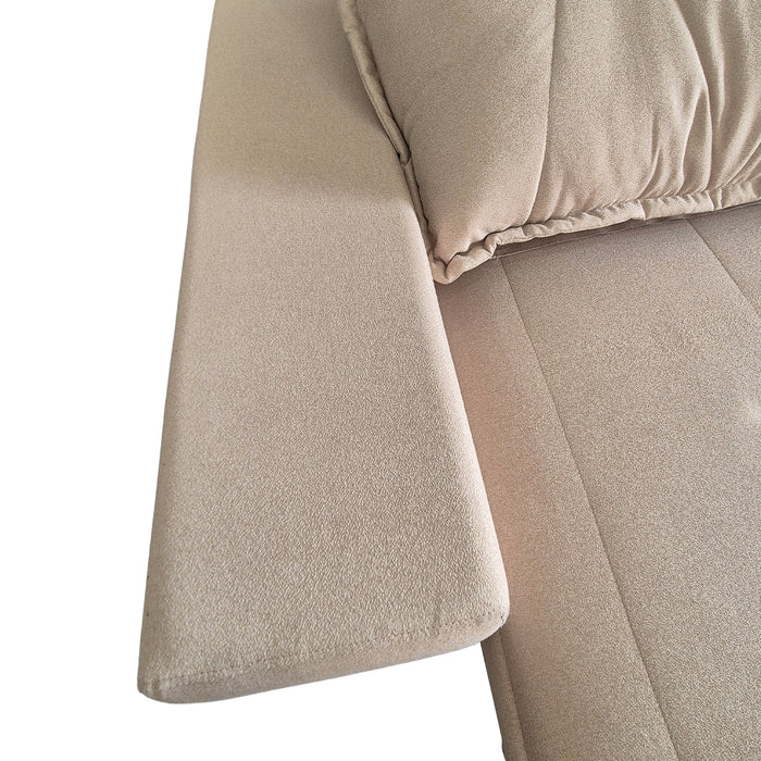 Brazos de proporción generosa con acabados redondeados que brindan soporte cómodo y aportan elegancia estructural al conjunto del sofá.