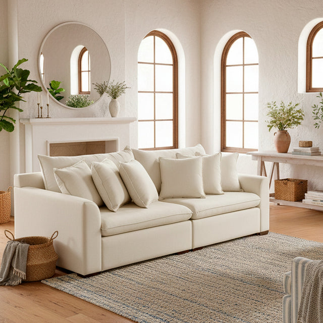 Conoce el sofá Atualittá para entrega inmediata, tu refugio perfecto que combina elegantes líneas curvas con tres módulos desmontables de madera inmunizada y cojines de alta densidad para brindarte la comodidad suprema que mereces, adaptándose a tu estilo y permitiéndote reinventar tu espacio las veces que quieras.