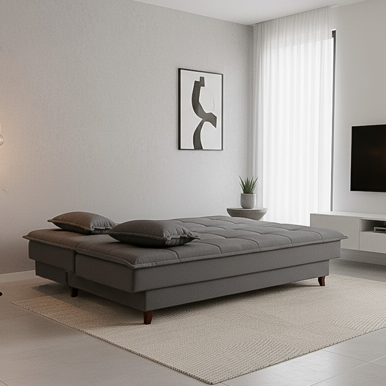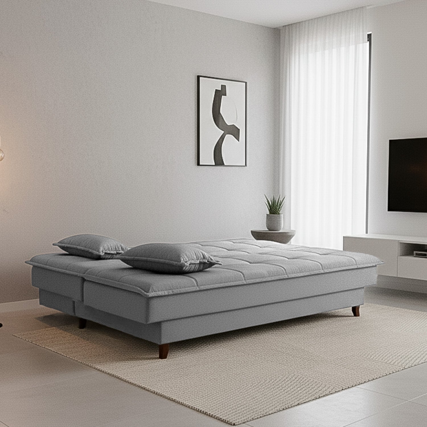 ¿Te imaginas un mueble que se adapte a tu vida? El Futón cama Sonhare es sofá de día y cama de noche, transformándose con un simple movimiento. Su diseño moderno, acolchado envolvente y cojines adicionales aportan elegancia y comodidad a cualquier espacio. Aprovecha cada centímetro de tu hogar sin sacrificar estilo. Porque mereces lo mejor de ambos mundos