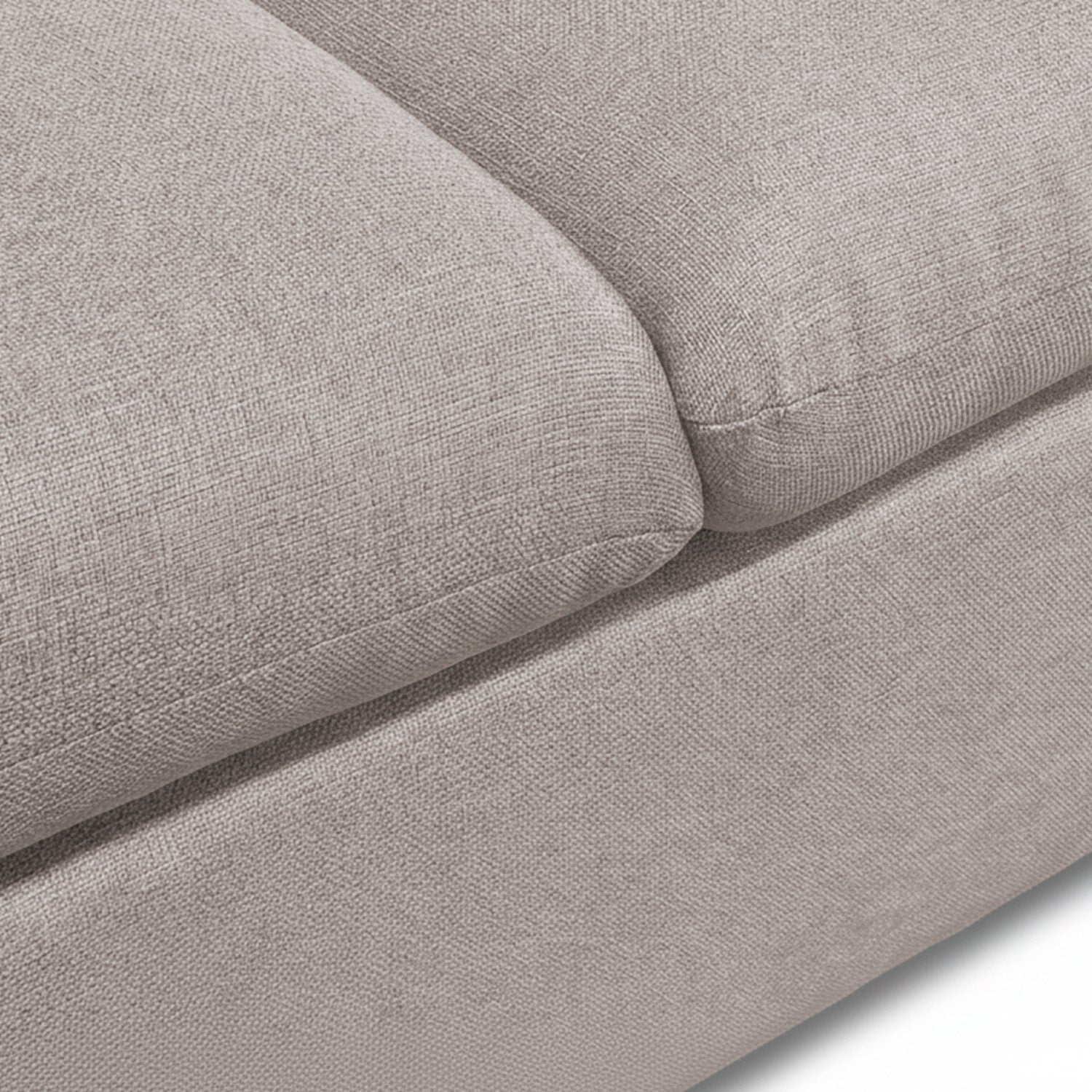 - Respaldo y detalles: Respaldos fijos con cojines sueltos de alta densidad que proporcionan un soporte cómodo y un fácil mantenimiento. Se complementan con cojines decorativos que se pueden personalizar según la tela elegida: lino, ante, polipiel o gamuza.