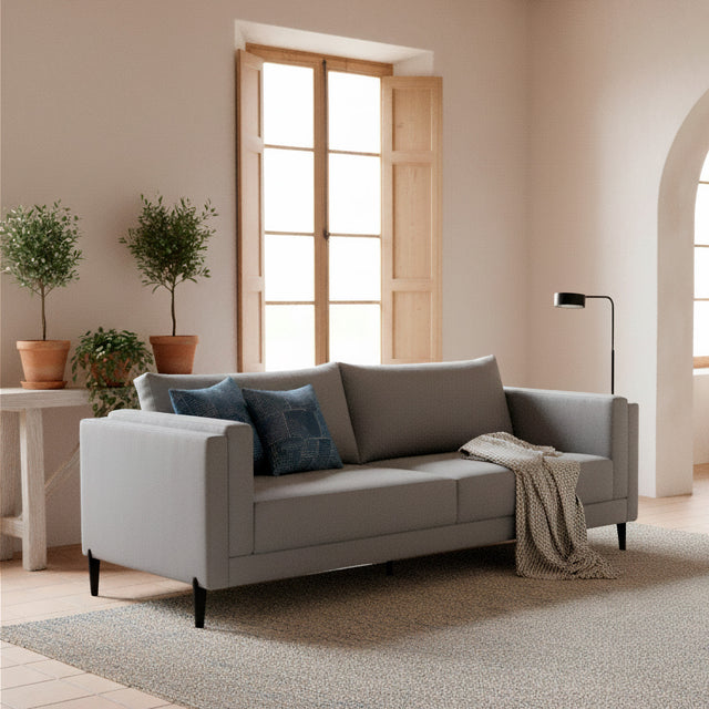 Este sofá de dos asientos combina diseño minimalista con comodidad superior. Sus cojines acolchados y patas de acero ofrecen confort duradero y estilo moderno. Disponible en varios colores, es la pieza perfecta para transformar tu hogar en un espacio sofisticado y acogedor.