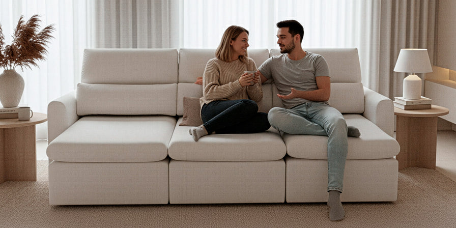 Cada módulo del sofá se extiende de forma independiente, permitiendo que se adapte a cada momento y necesidad de comodidad.