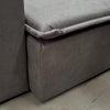 - Respaldo y detalles: Respaldos fijos con cojines sueltos de alta densidad que proporcionan un soporte cómodo y un fácil mantenimiento. Se complementan con cojines decorativos que se pueden personalizar según la tela elegida: lino, ante, polipiel o gamuza.