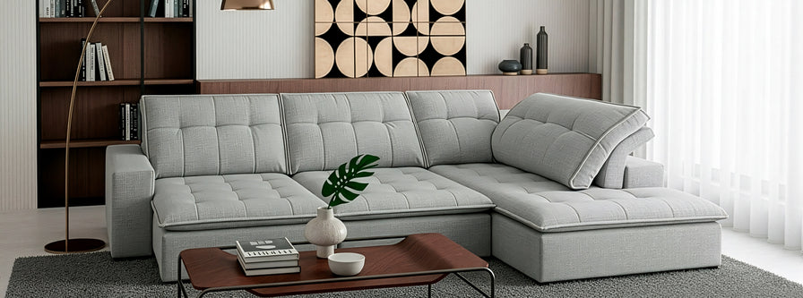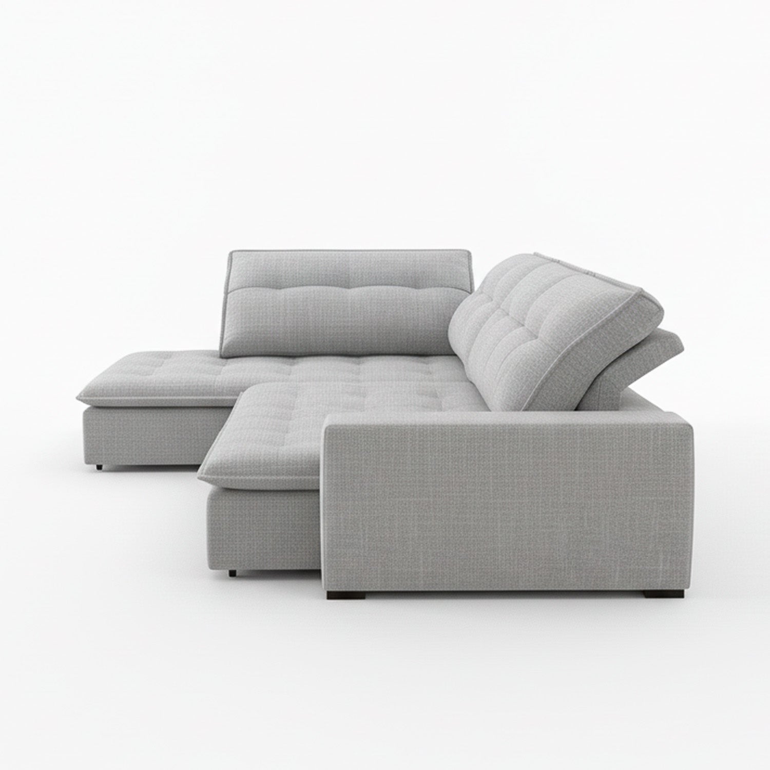 El Sofá Vancouver con Chaise Longue es tu invitación a vivir el confort sin compromisos. Con espuma de alta densidad certificada y estructura de madera maciza, te envuelve en una relajación deleitante que resiste el paso del tiempo. Su sistema retráctil y reclinable se adapta a cada momento: desde conversaciones animadas hasta descansos profundos. Diseñado con elegancia contemporánea, trasforma cualquier espacio en un centro de atención sofisticado, mientras que sus tejidos premium de alta calidad combinan durabilidad y confort sensorial. No es solo mobiliario, es tu refugio personal donde el bienestar y el estilo se encuentran para ofrecerte la experiencia de relajación que realmente mereces.