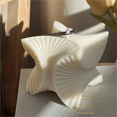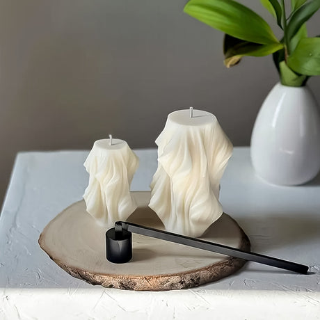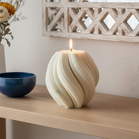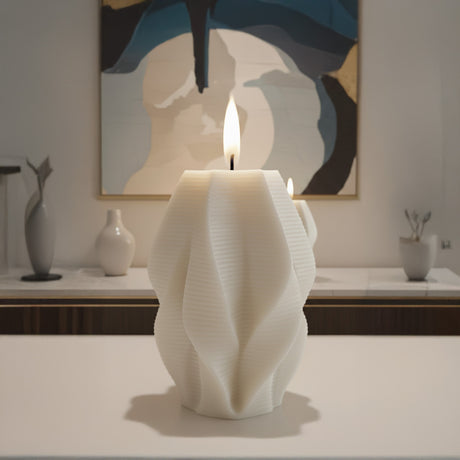 Vela de Cera Blanca Nórdica Ondas Geométricas
