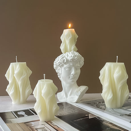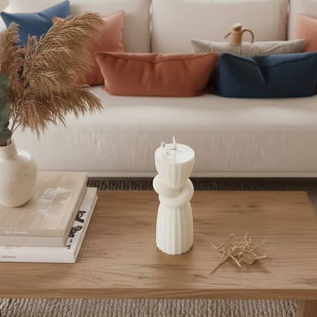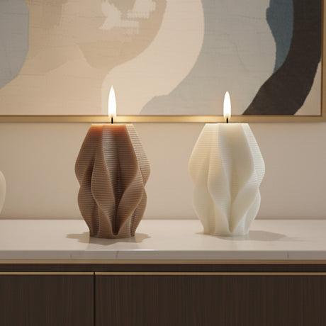 Vela de Cera Blanca Nórdica Pilares Geométricos