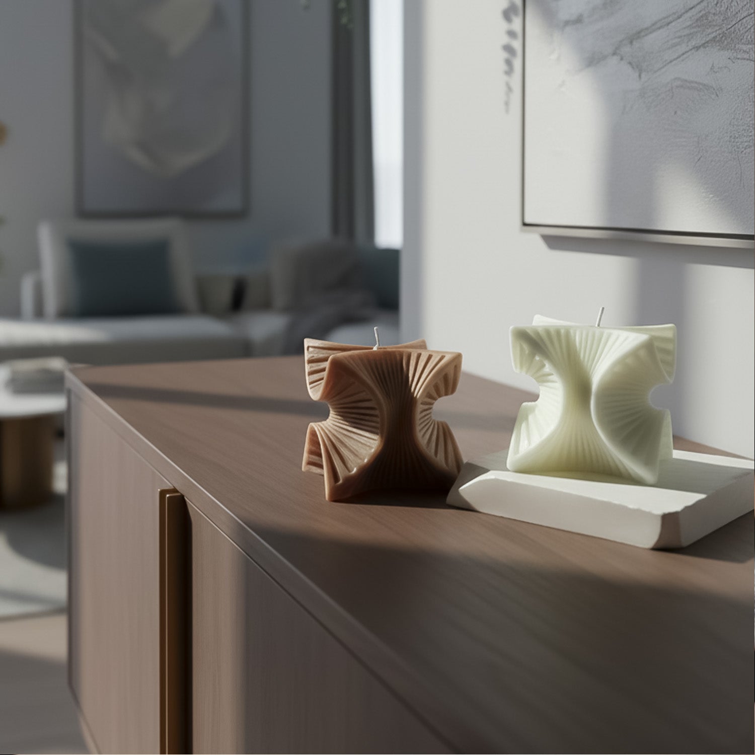 Estas velas escultóricas con diseño en espiral único crean fascinantes juegos de luz y sombra que transforman cualquier ambiente. Disponibles en 2 diferentes tonalidades. Son más que simples velas: son piezas de arte funcional que aportan sofisticación y calidez a tu hogar, convirtiendo cada espacio en un refugio acogedor y elegante.