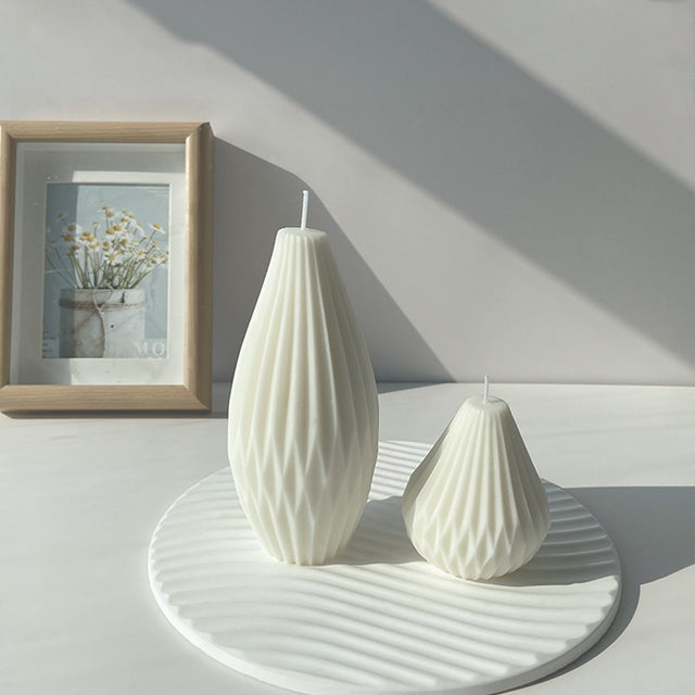 Decora tu hogar con elegancia y calidez con nuestra vela de diseño en forma de pera, una pieza que combina sencillez y sofisticación. Disponible en dos tamaños ideales (7.5cm x  6.5cm y 14.5cm x 6.8cm), su silueta moderna y textura geométrica la convierten en un detalle único que realza cualquier espacio. Perfecta para crear ambientes acogedores y llenos de estilo, esta vela no solo ilumina, sino que también embellece tu hogar con un encanto minimalista y atemporal.