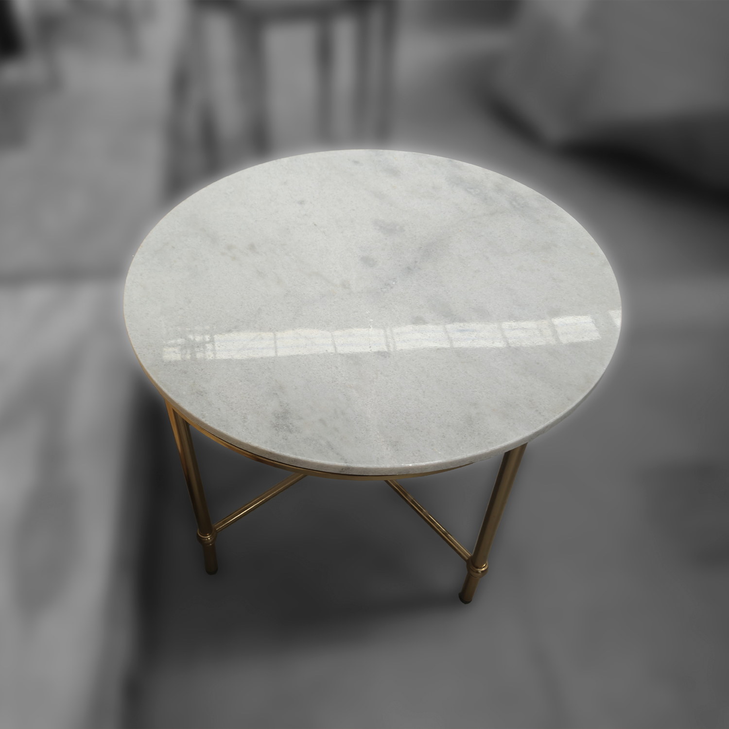 Mesas de centro nido con una base hecha en metal color dorado y con una cubierta en mármol color blanco. Altamente resistentes y muy útiles para colocar en el living y poder apoyar accesorios decorativos. Estas mesas son lo último en tendencias de decoración y están full para esta temporada.