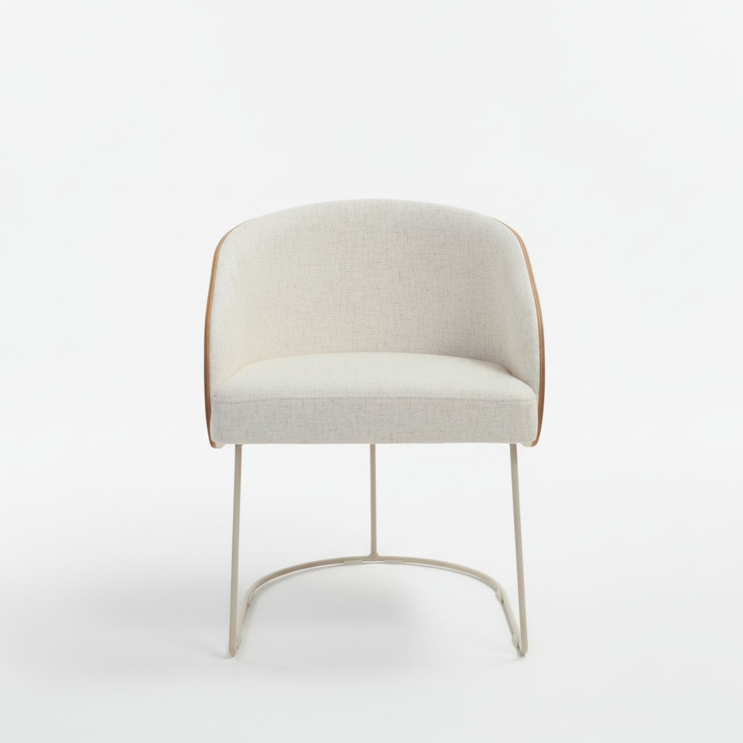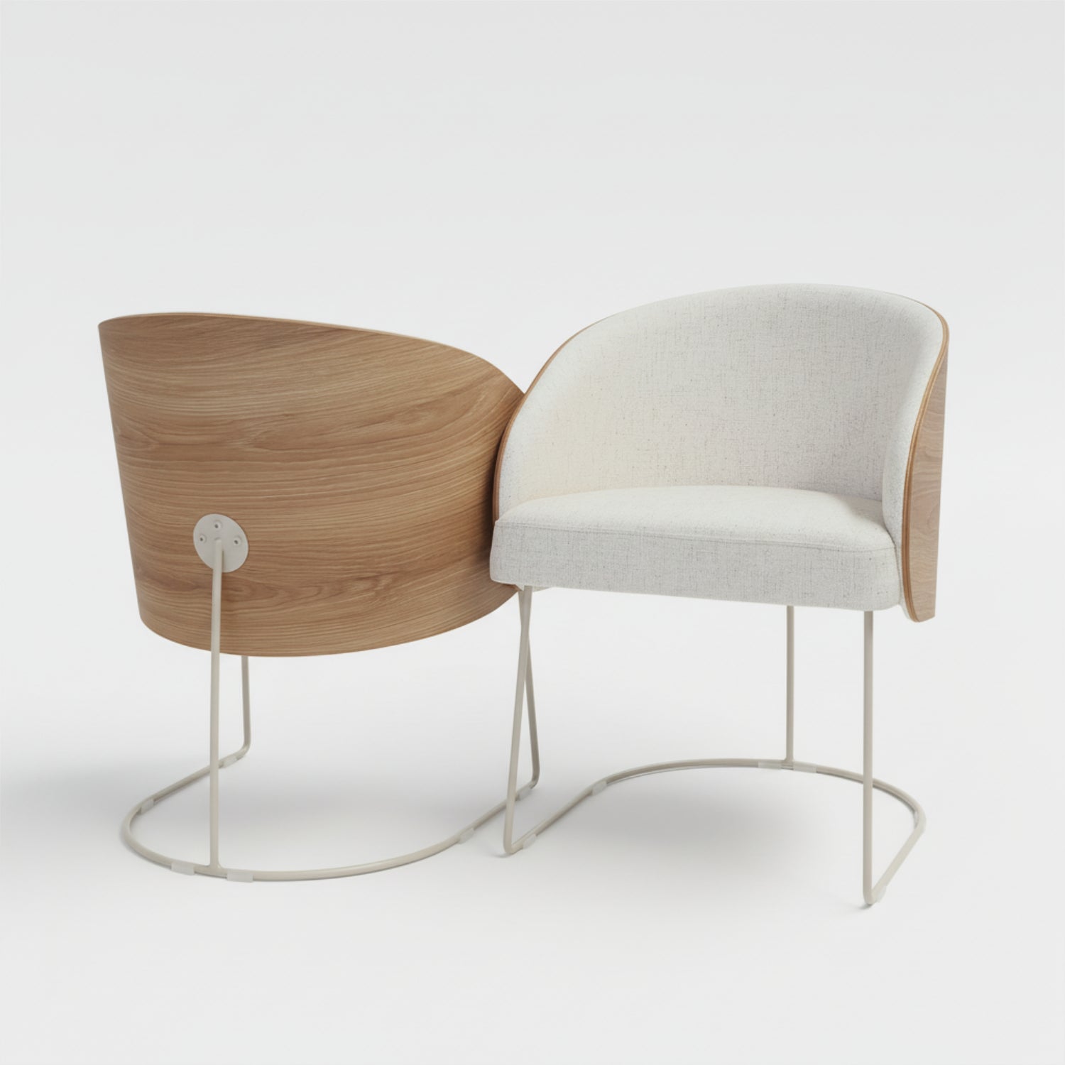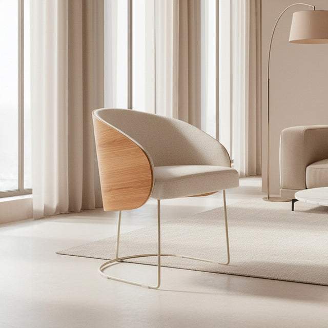 El asiento ligeramente acolchado asegura confort sin perder líneas limpias y minimalistas, transmitiendo ligereza visual.