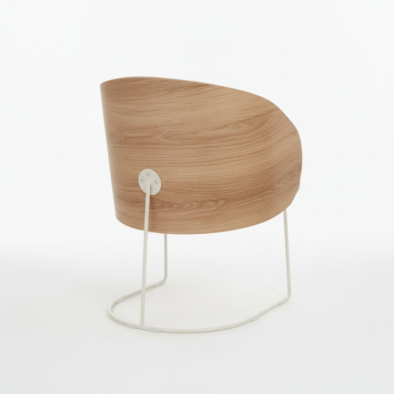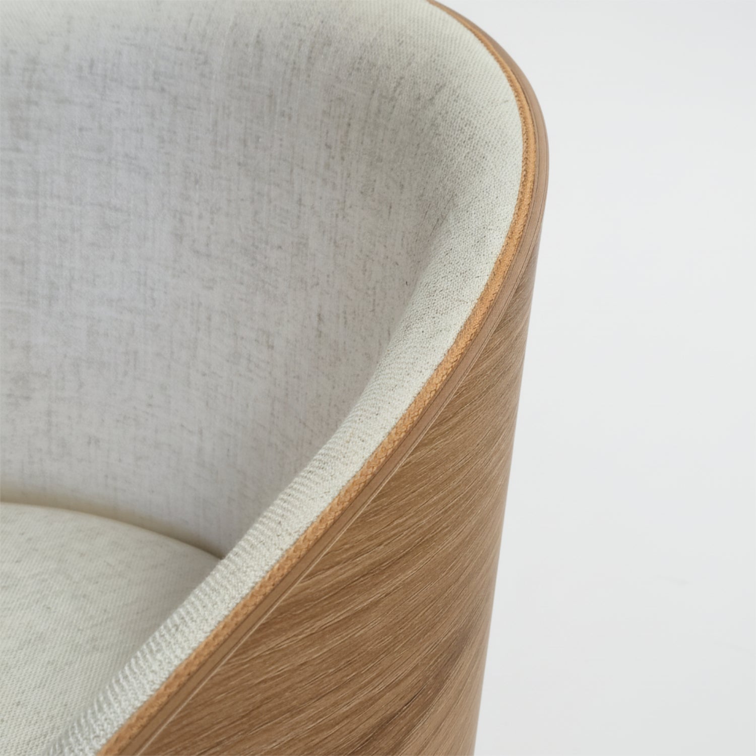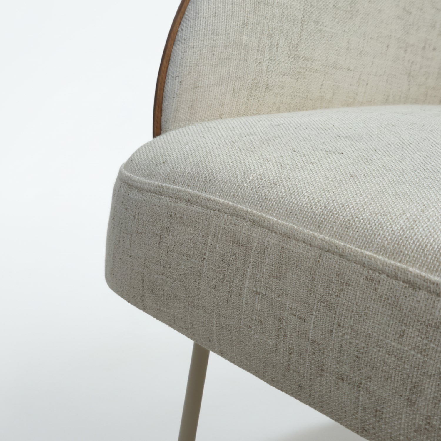 El asiento ligeramente acolchado asegura confort sin perder líneas limpias y minimalistas, transmitiendo ligereza visual.