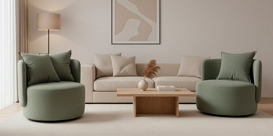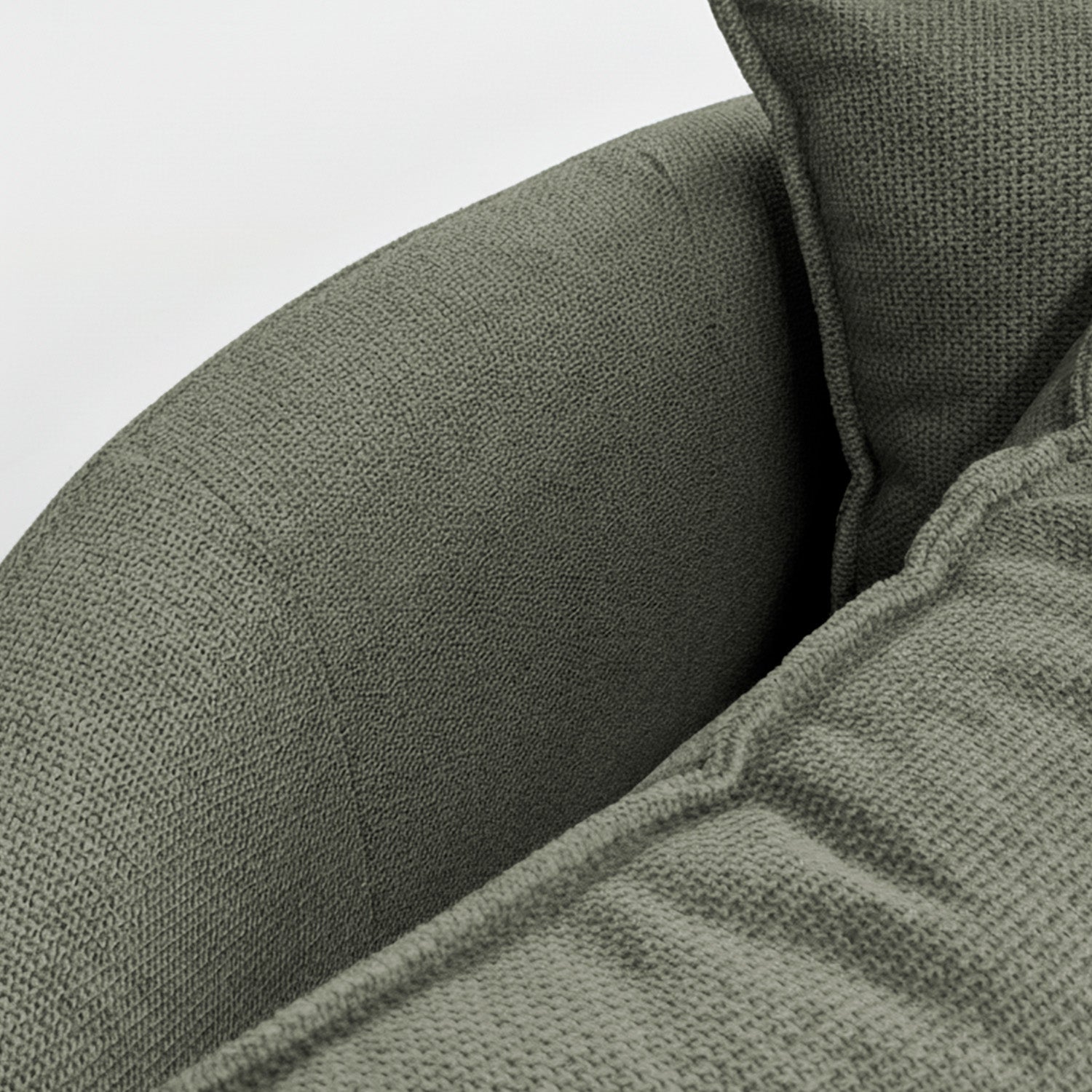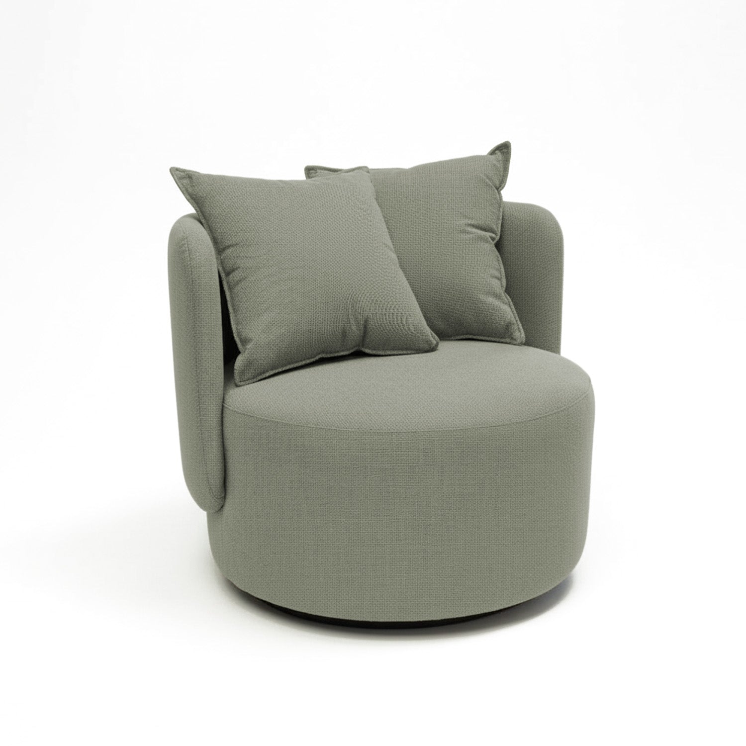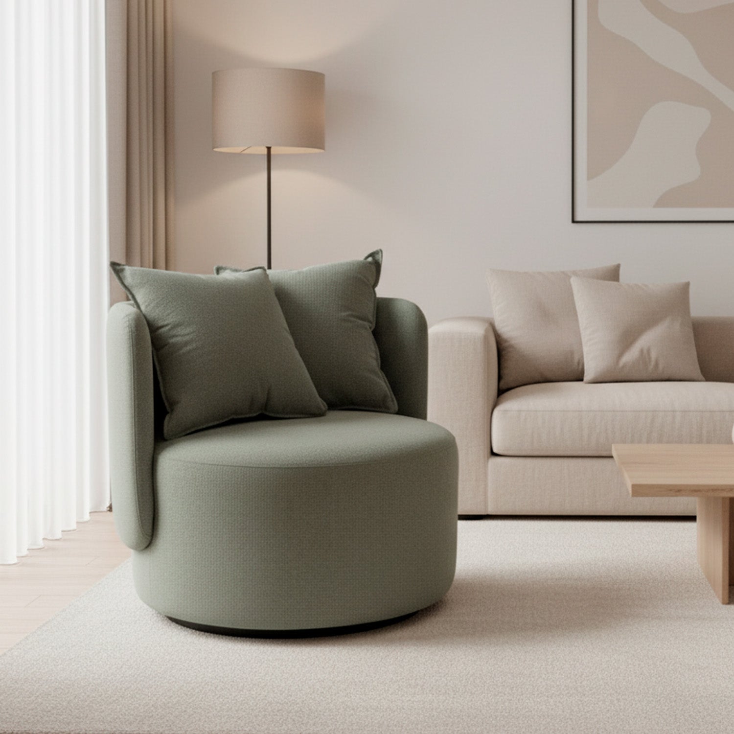 La poltrona Luna es ese equilibrio perfecto entre estilo y comodidad. Su silueta cilíndrica con base giratoria de 360° te da libertad de movimiento, mientras sus cojines sueltos te invitan a relajarte completamente. En verde musgo sofisticado, transforma cualquier rincón en tu espacio favorito. Lista para entrega inmediata.