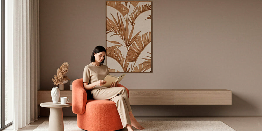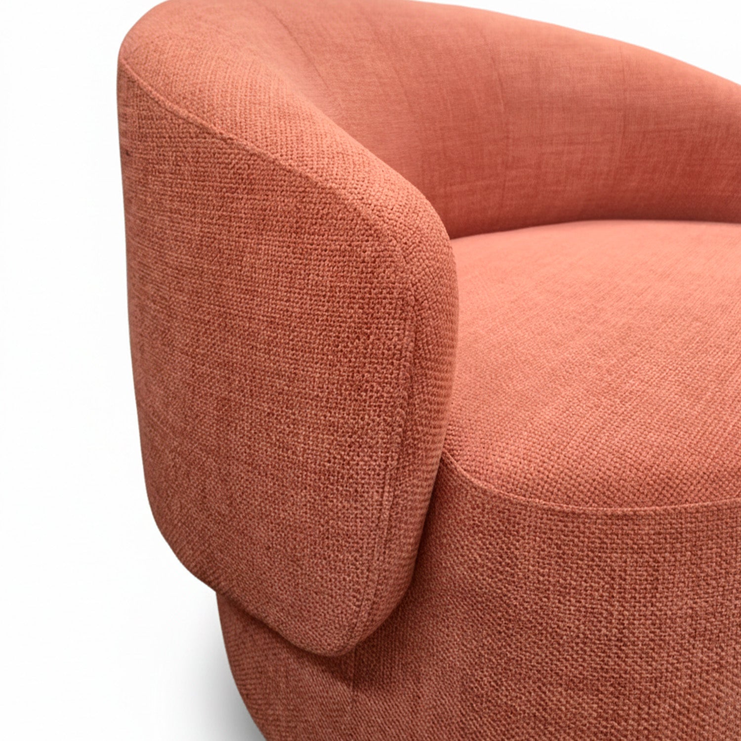 Imagina hundirte en esta poltrona después de un día largo. Su diseño envolvente literalmente te abraza, y ese tono rojo salmón aporta la calidez justa sin cansar. La base cilíndrica no solo se ve increíble, sino que le da estabilidad real. Es esa pieza que buscas cuando quieres comodidad de verdad con un toque de estilo que nunca pasa de moda.