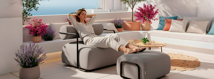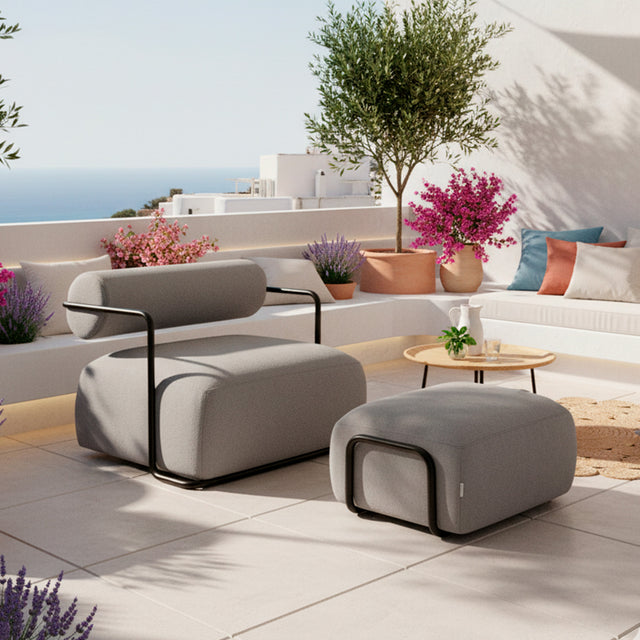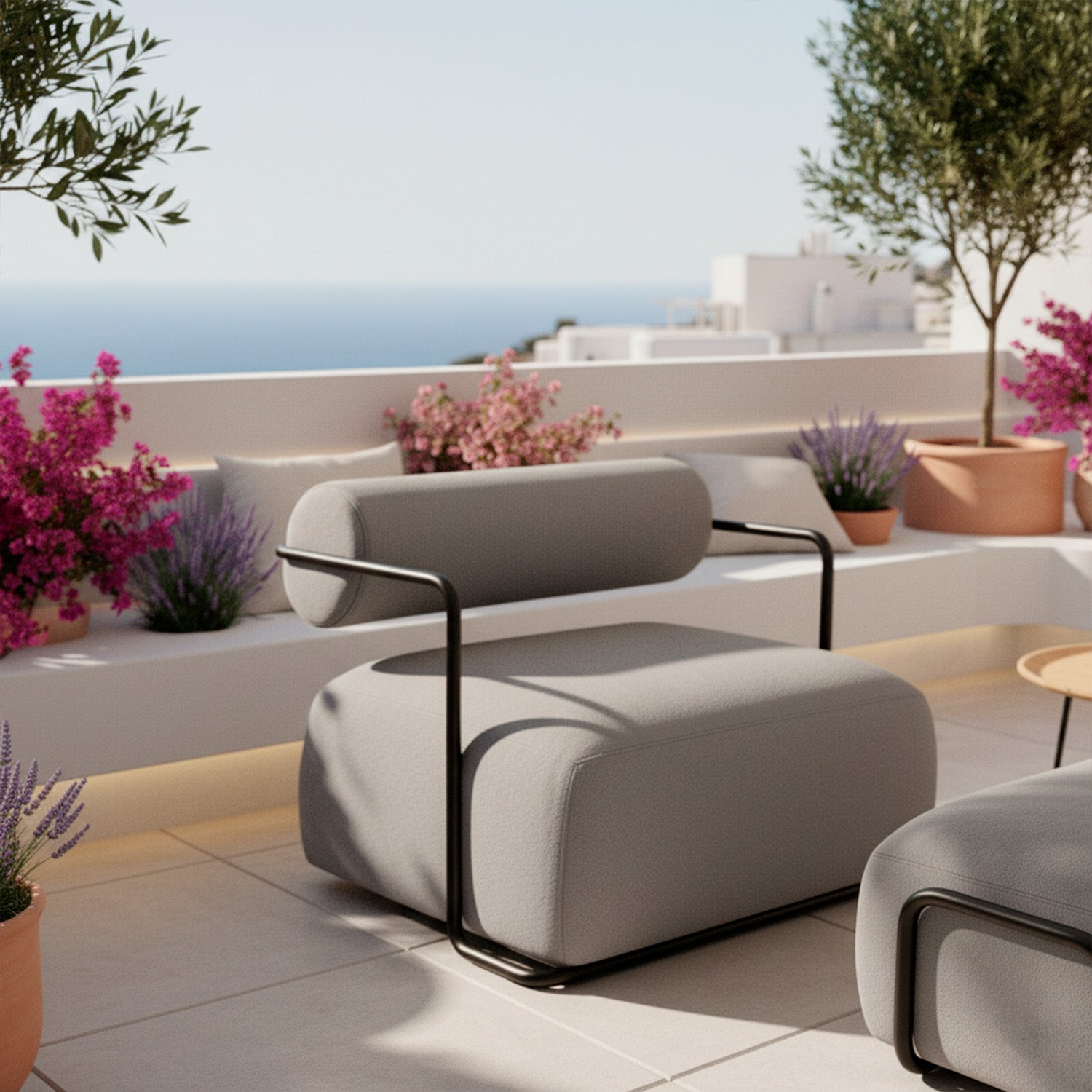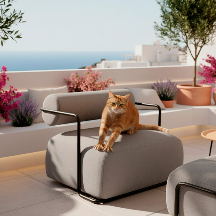 Diseñada para exteriores, resiste todo: su tela impermeable repele líquidos, el tratamiento UV protege del sol intenso, y su tapizado soporta arañazos y pelos de mascotas sin perder su aspecto impecable.