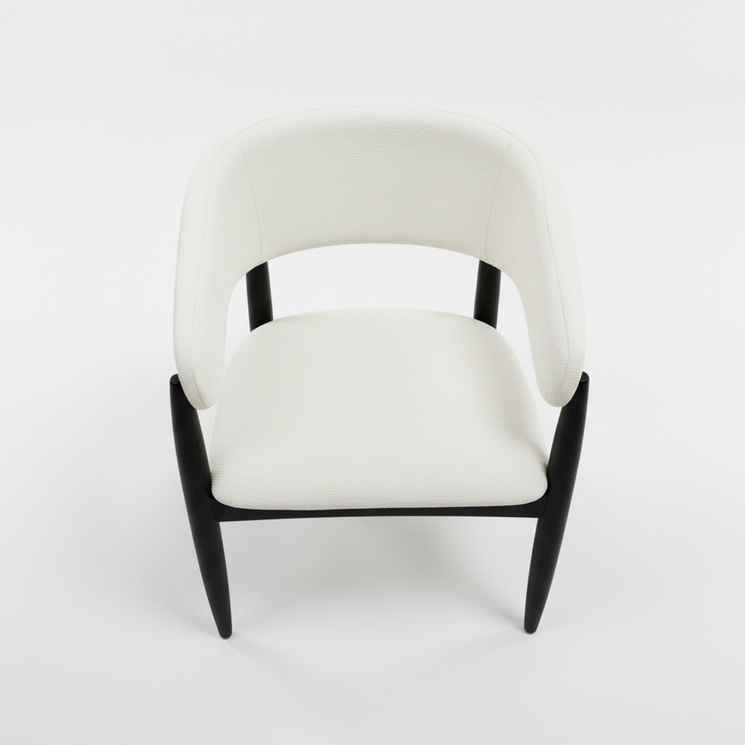 Bouclé blanco contra madera negra: sofisticación que no pasa de moda. Se ve cara sin serlo, tus invitados van a preguntar por ella.