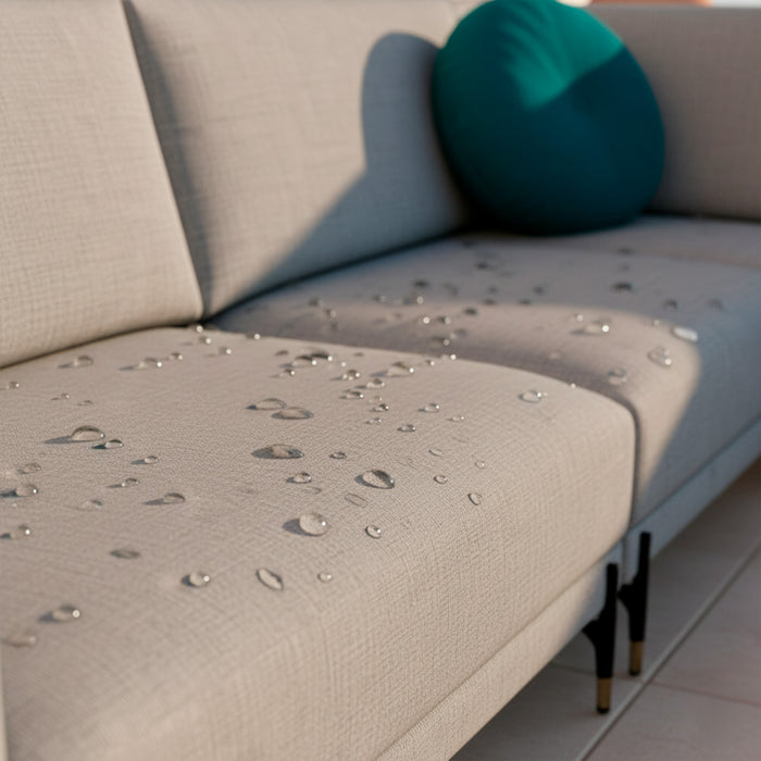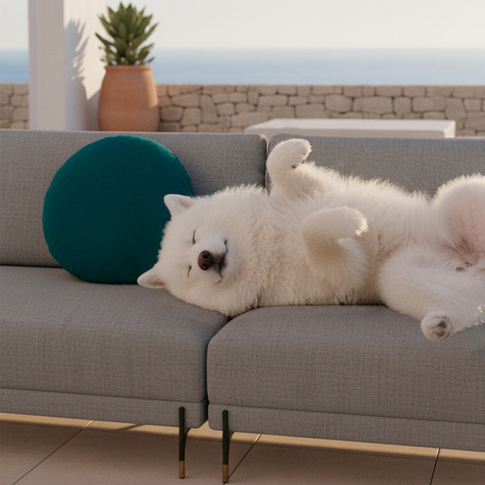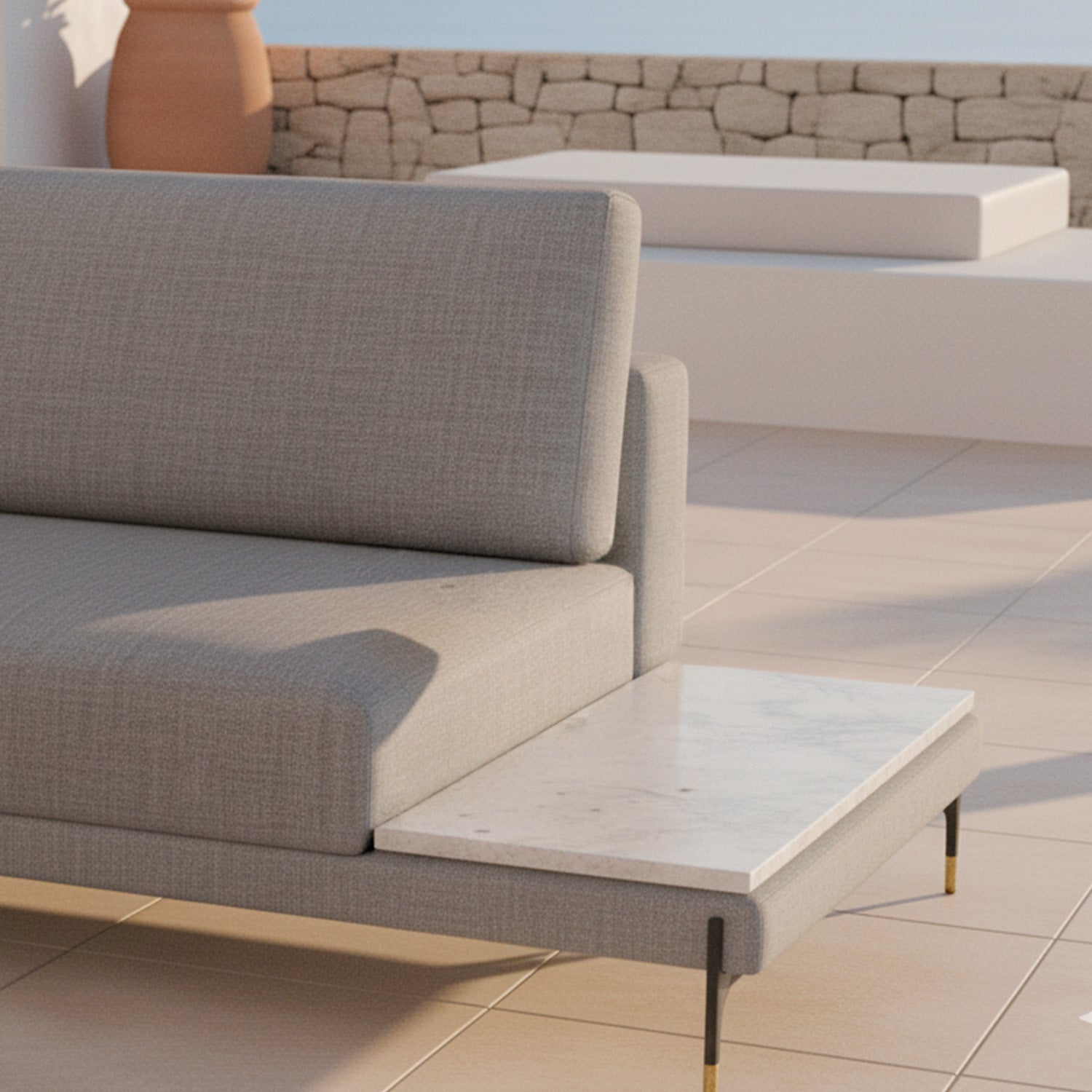 Transforma tu terraza con el sofá Cobble en L: diseño contemporáneo que combina comodidad y estilo con su elegante mesa de mármol lateral. Su tela impermeable con protección UV desafía el sol y la lluvia, mientras que su tapizado resistente a arañazos es perfecto si tienes mascotas. Disfruta tu espacio exterior sin preocupaciones, con un mueble hecho para durar.