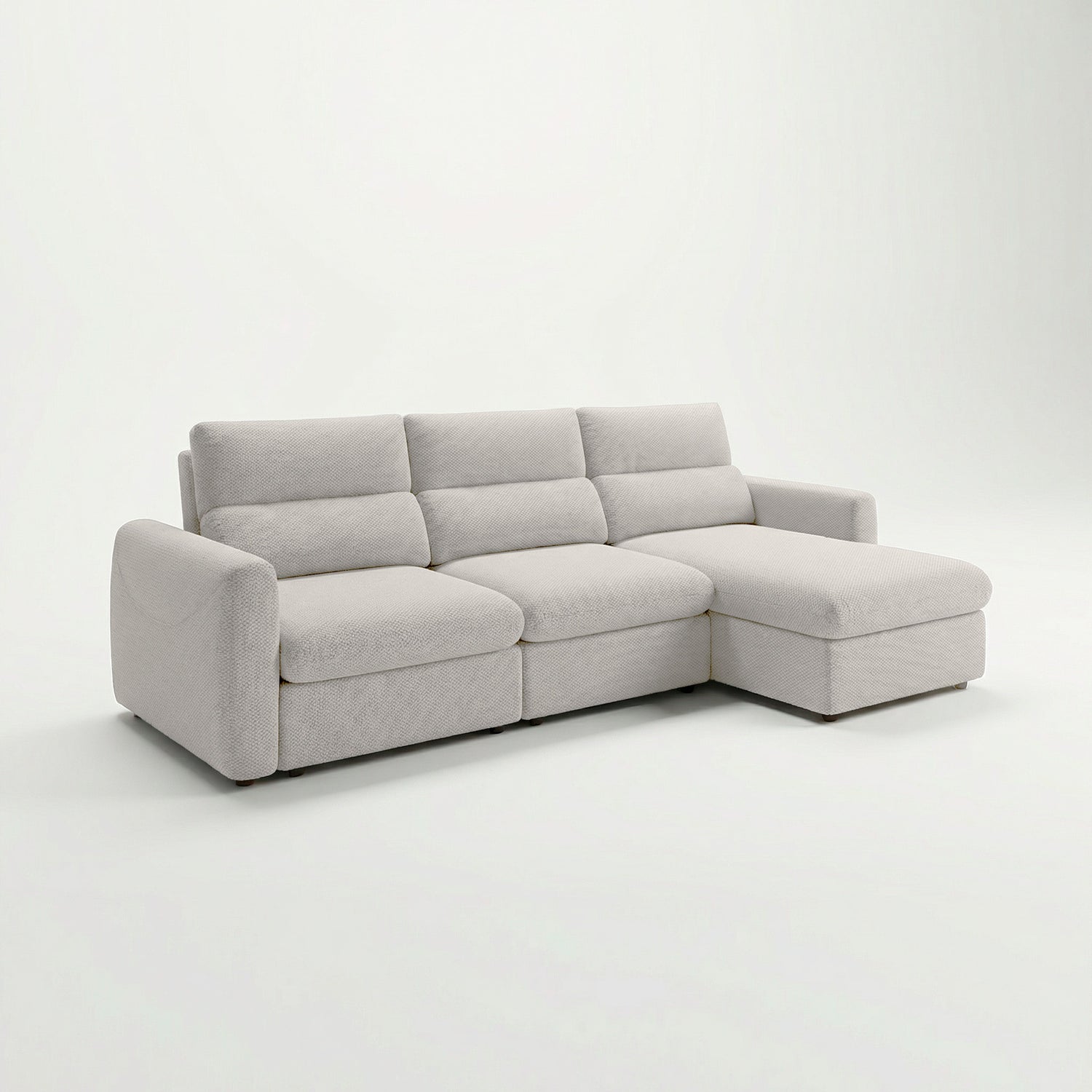 Diseñado para ofrecer máximo confort y adaptabilidad, sin sacrificar un estilo sobrio y elegante. Sus líneas limpias, proporciones equilibradas y acabado textil con textura tejida le otorgan un aspecto moderno y acogedor.