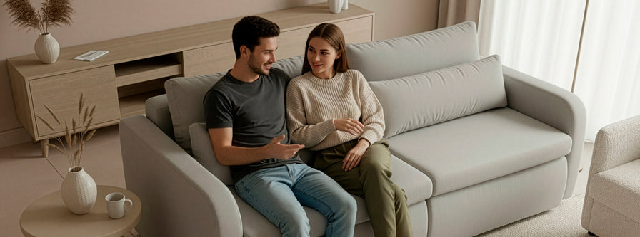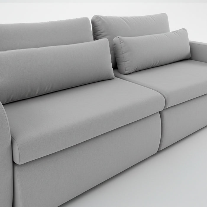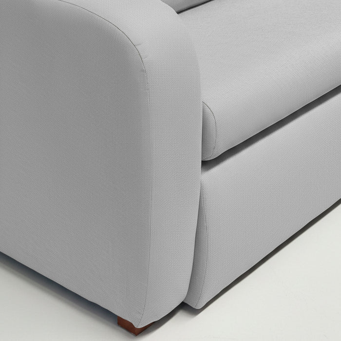 Con apoyabrazos de líneas suavemente redondeadas que aportan dinamismo y calidez, este sofá logra el equilibrio perfecto entre confort visual y estabilidad estructural.
