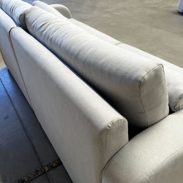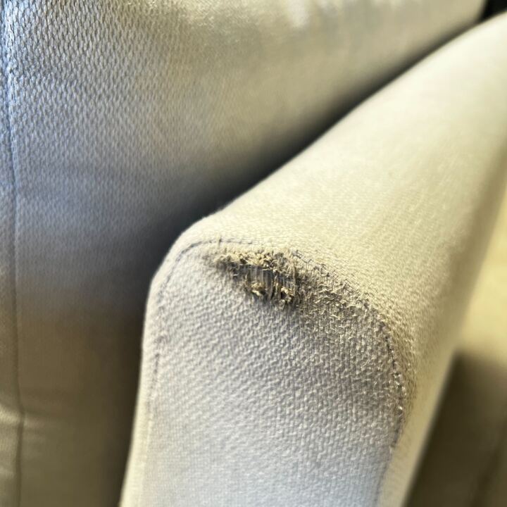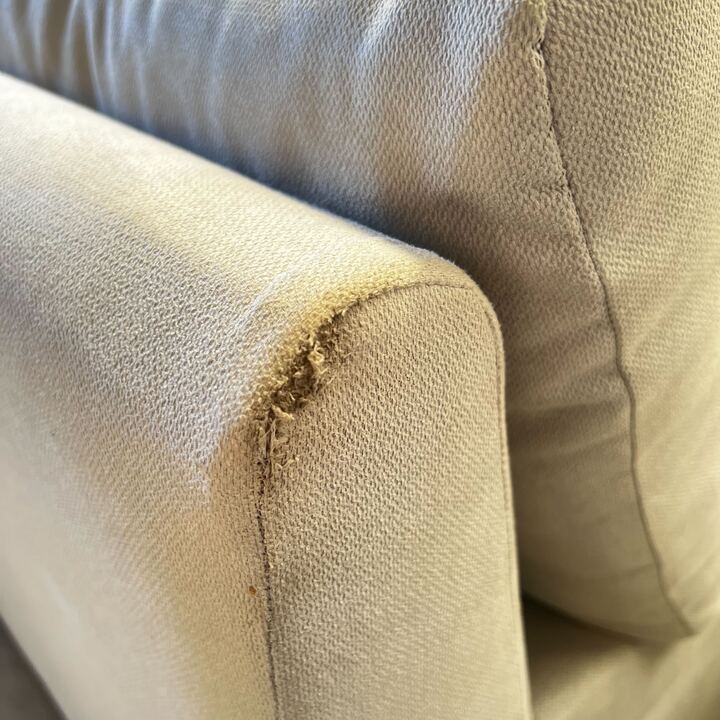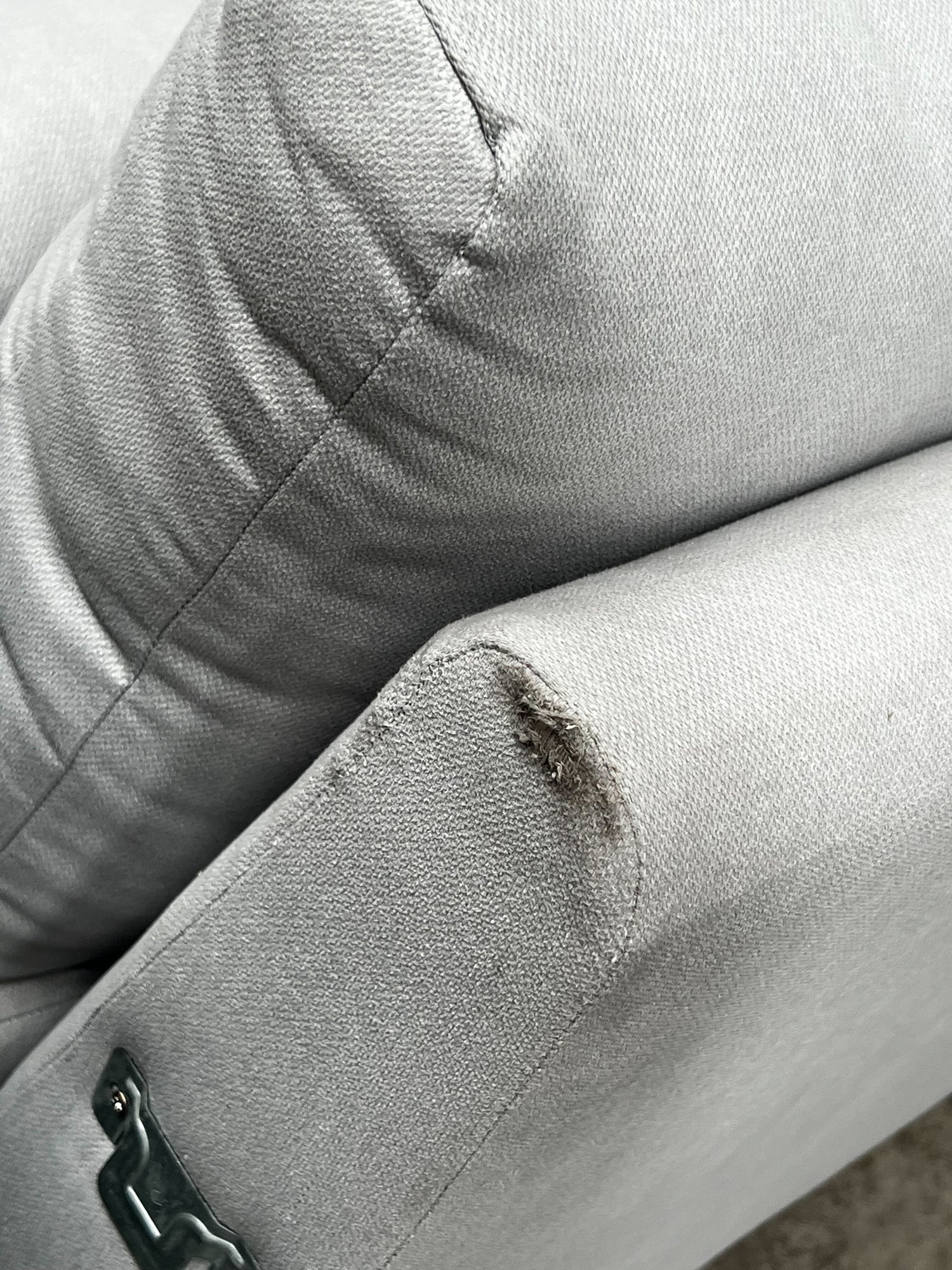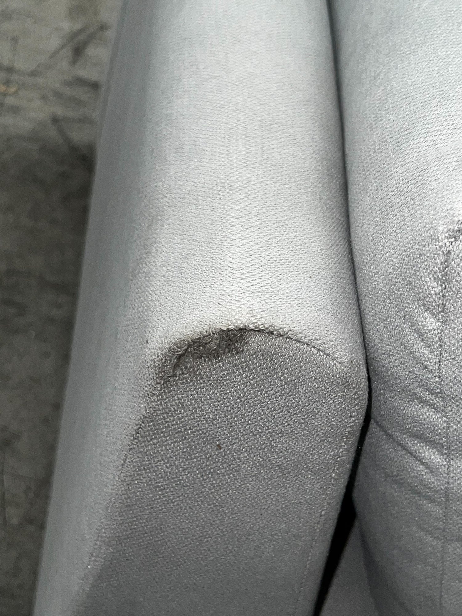El sofá Treviso presenta manchas y detalles en las uniones del tejido