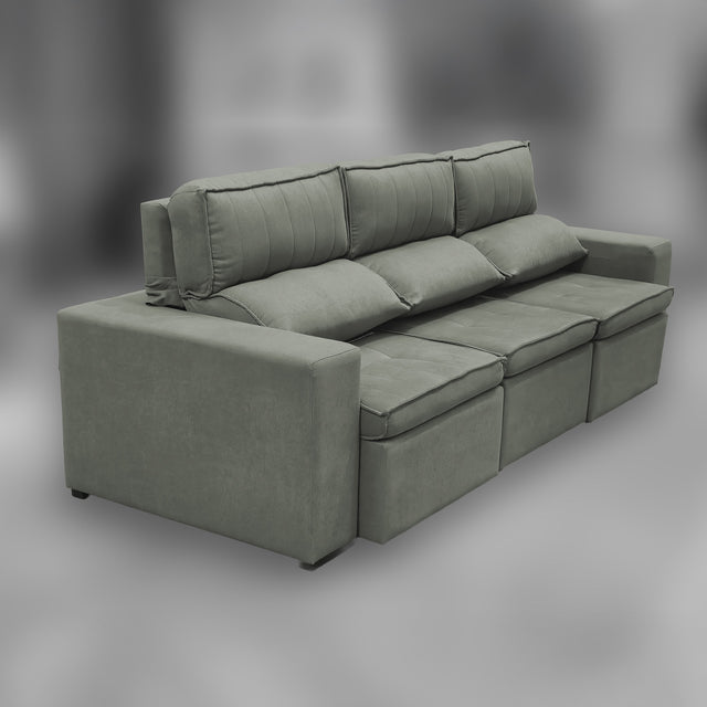 El sofá extensible y reclinable Toquio de 3 cuerpos, con funciones de extensión y reclinación, presenta marcas de desgaste únicamente en la tapicería de los tres asientos. Aparte de este desgaste en la tela, el sofá se encuentra en perfectas condiciones tanto en su funcionamiento como en su aspecto general.