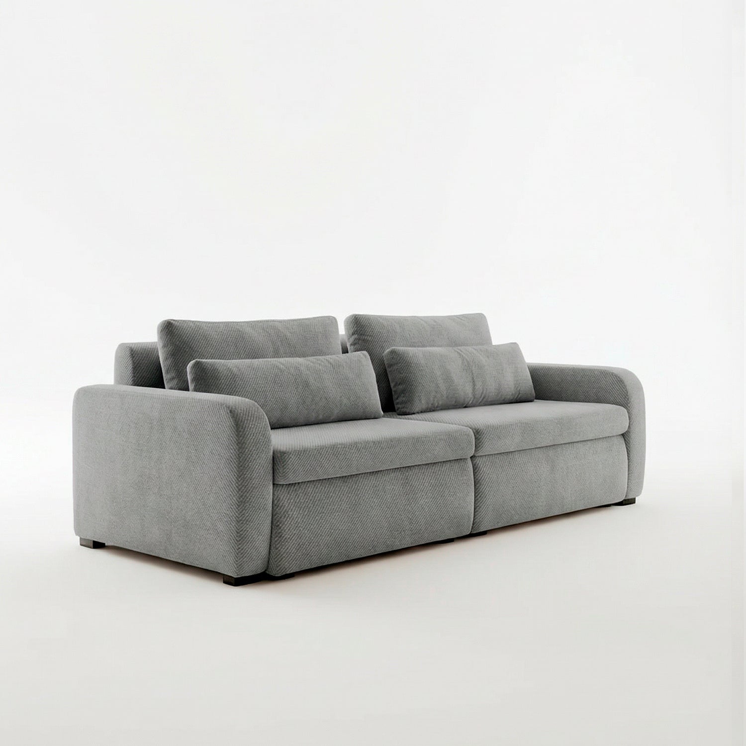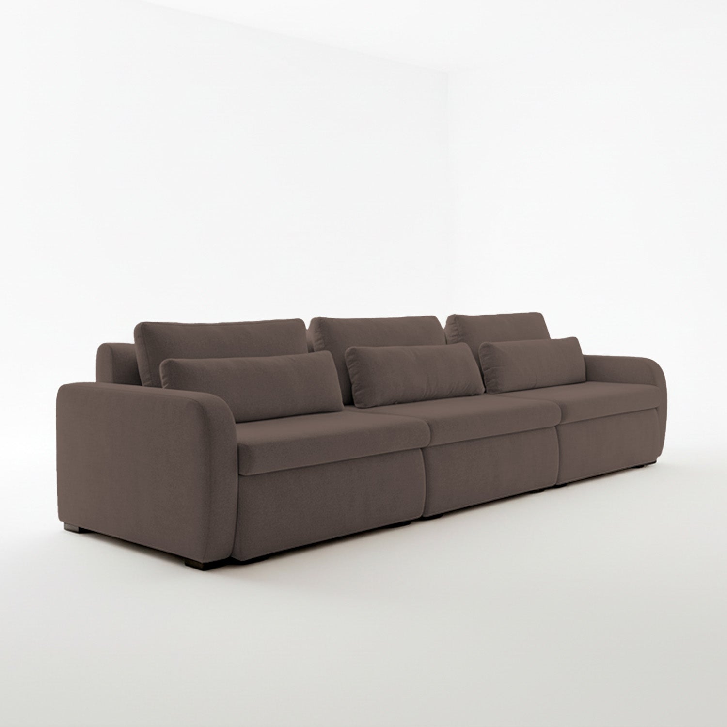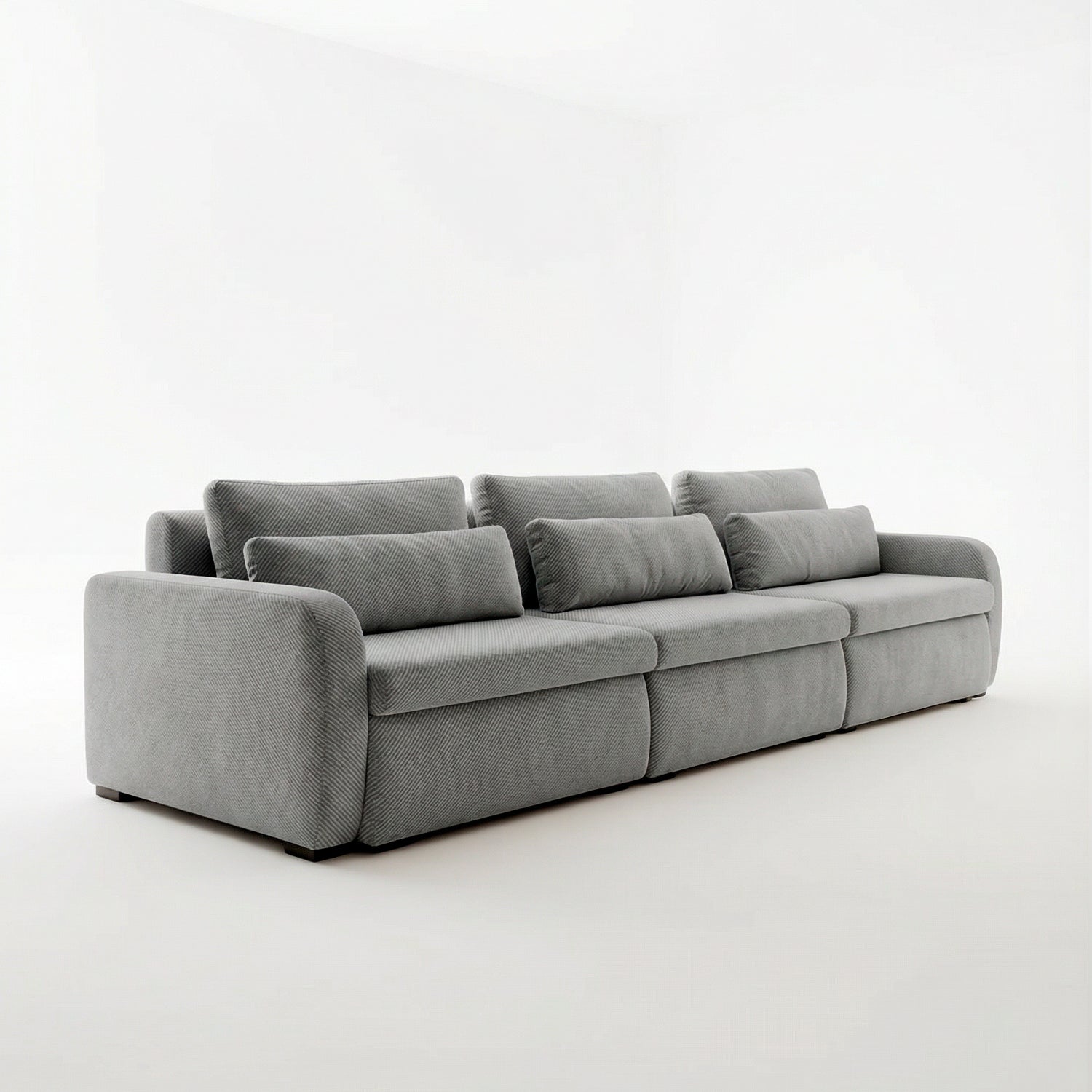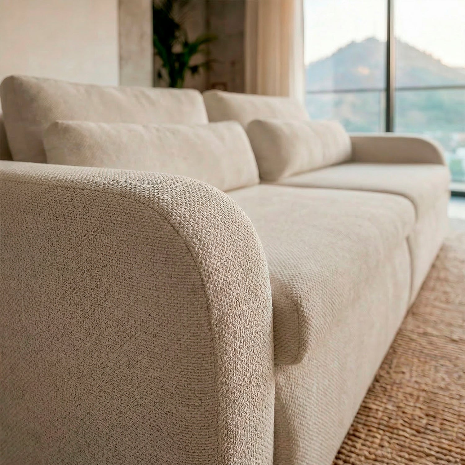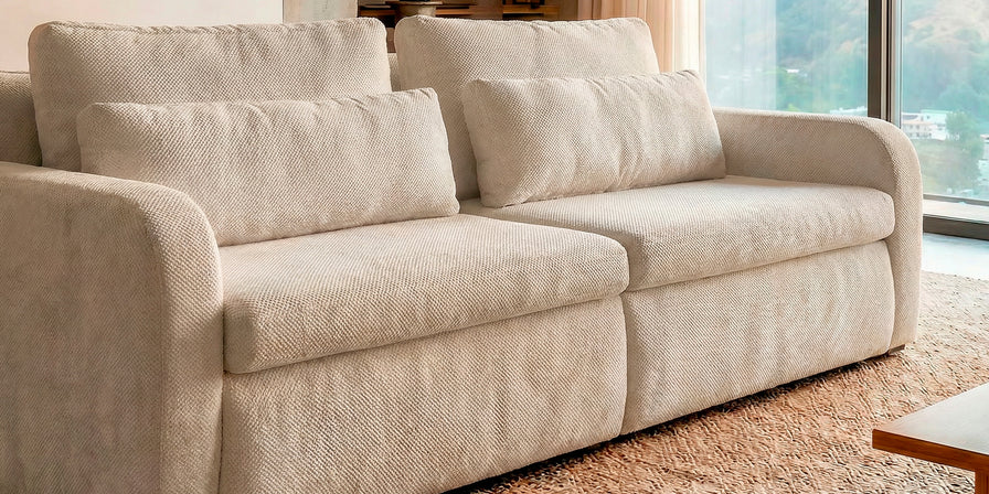El sofá Treviso destaca por su diseño contemporáneo de líneas suaves y volumetría generosa. Está conformado por tres módulos amplios que ofrecen gran comodidad, ideal para espacios modernos y familiares.