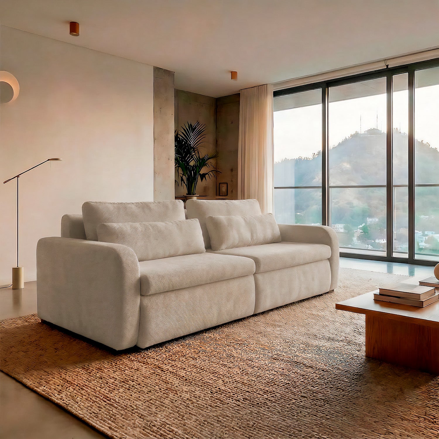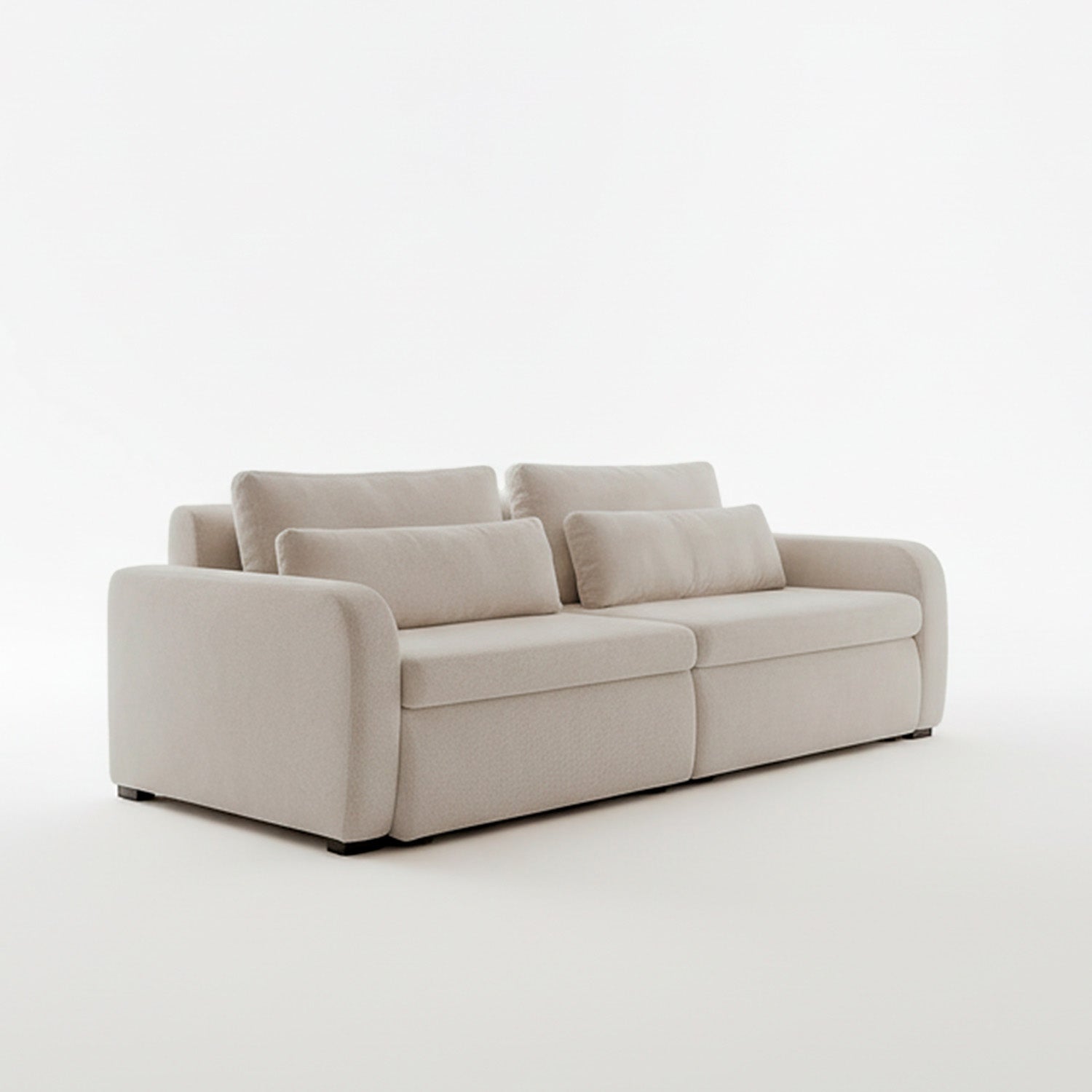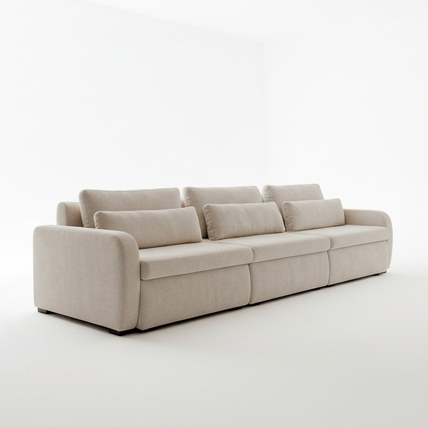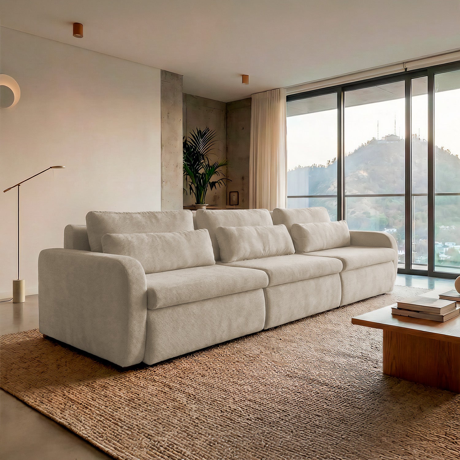 El sofá Treviso destaca por su diseño contemporáneo de líneas suaves y volumetría generosa. Está conformado por tres módulos amplios que ofrecen gran comodidad, ideal para espacios modernos y familiares.