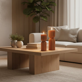 Velas esculturales con acanalado en espiral que crean efectos de luz únicos. Disponibles en dos tamaños (11.5cm y 14.5cm de altura), su elegante forma de reloj de arena en tonos terracota aporta sofisticación moderna a cualquier espacio, garantizando una combustión prolongada y uniforme.